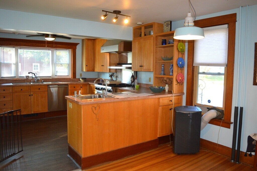 Rent this charming 5 Bedroom brick house in the heart of New Glarus. The inviting front porch and twin entry doors welcome you into a house full of character. Inside, gleaming hardwood floors flow through the front living areas, dining room, and main floor bedroom. The fully equipped kitchen features stainless steel appliances and abundant cabinetry. Upstairs, you’ll find three comfortable bedrooms and a full bath, while the third level retreat offers a huge fifth bedroom with vaulted ceilings, a skylight, and a cozy gas fireplace. The basement includes laundry facilities, a half bath, and additional storage space. Enjoy the outdoors with a fenced yard, patio area, storage shed, and off street parking via a private driveway. ***SORRY NO PETS*** ***PROPERTY AVAILABLE FOR A 12 MONTH NON-RENEWABLE LEASE ONLY*** Dishwasher Fenced Yard Gas Fireplace Hardwood Floors Off-Street Parking Professionally Managed Sorry No Pets Storage Shed Washer and Dryer Window AC Units