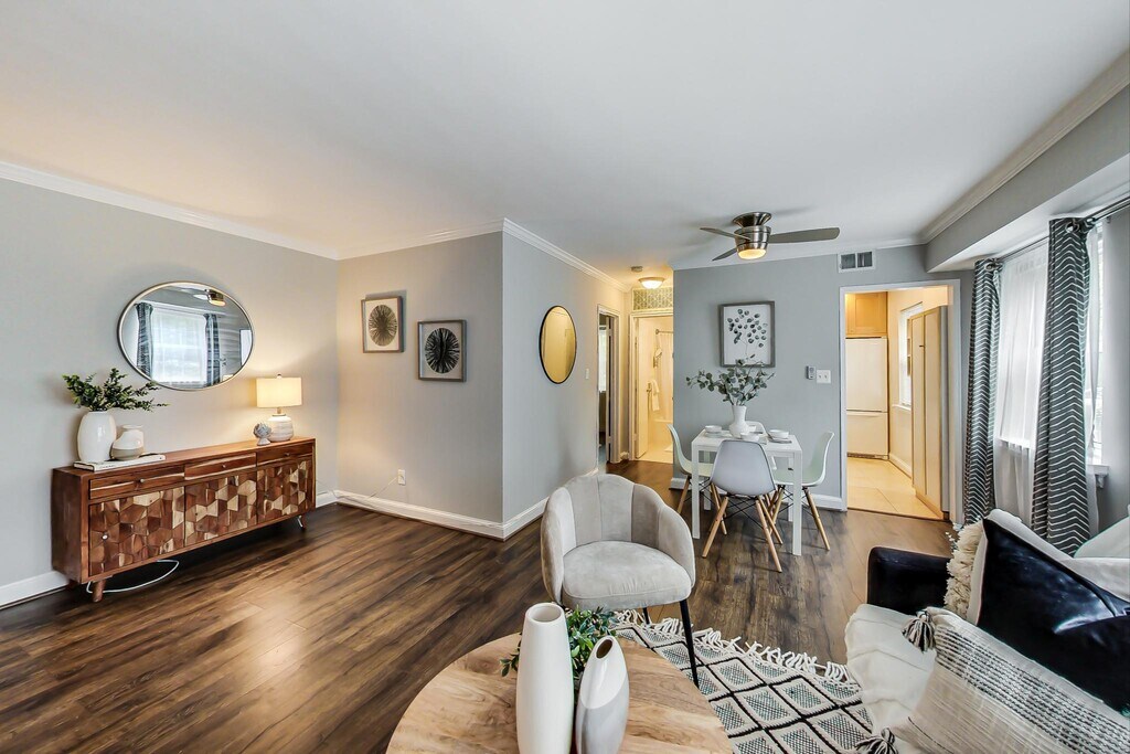 Now available — a bright and inviting one-bedroom, one-bath condo at 1303 N Ode Street #215 in Arlington’s Westmoreland Terrace. This stylish home offers a perfect mix of comfort and location. The open-concept living area features gleaming wood floors, fresh paint, and large windows that fill the space with natural light. The updated kitchen is equipped with Corian countertops, modern cabinetry, and recessed lighting, while the spacious bedroom provides excellent closet space and a serene setting for rest. Enjoy peaceful, park-like surroundings just minutes from the heart of D.C. Walk to Rosslyn or Courthouse Metro, explore local cafes, bike the nearby trails, or relax at the Iwo Jima Memorial Park right down the street. Westmoreland Terrace offers residents complimentary parking, additional storage, and beautifully maintained common grounds. Water, sewer, and trash are included in rent; tenant pays only electric and internet. Pets are welcome on a case-by-case basis. This is a non-smoking home available for immediate occupancy. The owner prefers applicants with a credit score above 700 and verifiable income of 2.5× the monthly rent.