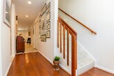 First floor features a galley kitchen that leads into an open concept dining/living space. Living room features a fireplace and sliding doors that open up to a private and serene deck and yard. Half bath and closet complete the first floor. Second floor features the spacious primary bedroom with ensuite bath, second bedroom and full bathroom with laundry area. Top floor has an inviting living space with vaulted ceiling, skylights and built-in desk. This open space can function as a bedroom, office, guest room, studio or family room. Central AC and in-unit laundry. One parking spot, plus guest parking. Water is included, tenants pay other utilities.