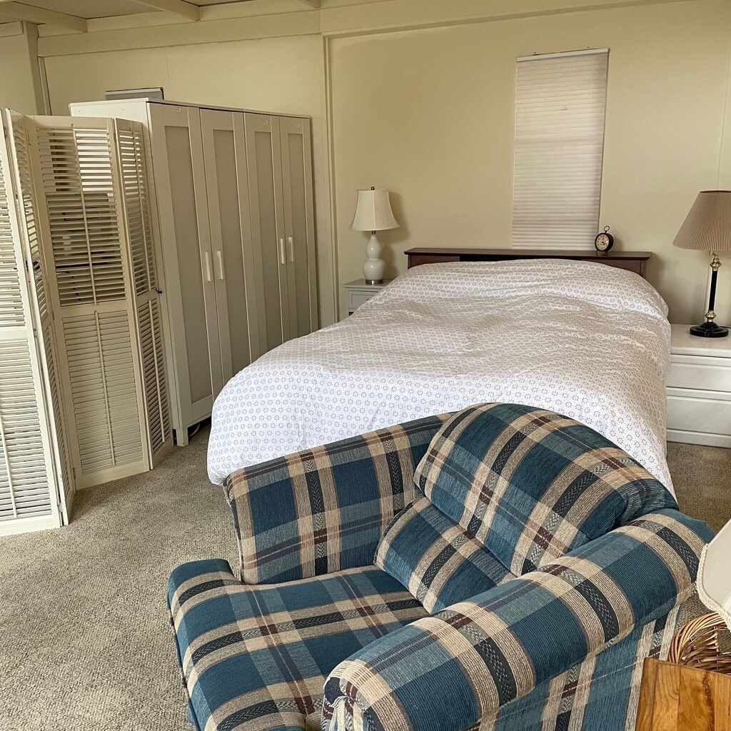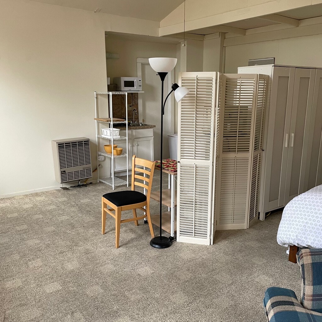 Private furnished studio located in the historic west side of Petaluma. Short distance to downtown or a country excursion. Ample natural light, vaulted ceiling, new paint. On-site laundry and deck with a garden view. Has kitchenette with refrigerator, air fryer/toaster oven, hotplate burners (no stove). Must have good credit and satisfy background checks, employment verification and income requirements. Favorable references are required from past two landlords and employers. Require proof of Renters Insurance. No smoking, No co-signers, No pets.