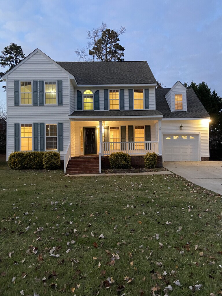 Discover your dream home in Raleigh, NC! This stunning 4-bedroom, 2.5-bathroom residence offers the perfect blend of comfort and style. The ground floor showcases gleaming wood floors, an inviting eat-in kitchen with ceramic tile and a full appliance package, a convenient storage pantry, and a separate dining area. A spacious living room and first-floor bathroom add to the main level’s appeal. Ascend to the second floor to find three well-appointed bedrooms with plush carpeting and a versatile bonus room featuring a closet and in-roof storage. The master suite is a true retreat, boasting a walk-in closet, custom-built shelving, and a luxurious private bath with dual sinks, an oversized jacuzzi tub, and a standing shower with surrounding jets. Outdoor living is a breeze with a charming front porch and a newly upgraded back patio, perfect for al fresco dining and relaxation. Practical amenities include an attached garage, an oversized driveway for additional parking, and a washer and dryer. New blinds have been installed throughout the house for added privacy and light control. This home’s prime location offers easy access to downtown Raleigh (less than 10 minutes), Garner (2 minutes), Interstate 40 (3 minutes), and RDU Airport (20 minutes). Two well-equipped public parks with pools and tennis courts are just 3 minutes away, providing ample recreational opportunities. Please note that no pets are allowed, and utilities are not included. Don’t miss your chance to experience the best of Raleigh living in this meticulously maintained home!
