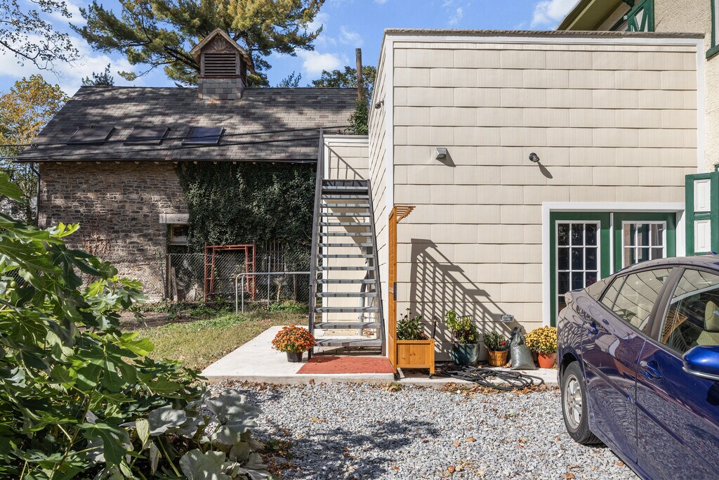 Welcome to the Carriage House at 131 W Walnut Ln. Tucked away in the rear of a 1-acre parcel is the newly renovated 19th Century Carriage House. Enjoy the privacy and charm of the Carriage House. The second-floor unit has its own separate entrance and private deck to enjoy your morning coffee in a serene and lush environment. This spacious 2-bedroom 1 bath unit features, hardwood floors throughout, open floor plan, gorgeous original details with a 20-foot vaulted ceiling at the center of the unit, with original exposed timber framing allowing for spectacular natural light. Fresh and modern updates have been added including stainless steel appliances, kitchen island, heated flooring in the kitchen and bathroom, quartz countertops in the kitchen and motion-activated hands-free sink faucet for added convenience. Each bedroom as well as the common spaces has its own PTAC system for efficient and fully zoned heating and cooling year-round. Front loading, in unit washer and dryer and on demand tankless hot water. The two spacious bedrooms each have their own custom closet with light and solid wood shelf/bar. The bathroom features a rustic double sink vanity, natural slate heated floors, and a sliding glass shower with built-in shelves for toiletries. Relax in this one-of-a-kind home with two car, off-street parking (available EV charging). A fantastic balance of modern updates and historic charm. Conveniently located near the Tulpehocken Train Station and easy access to Kelly Drive, Wissahickon Park, Ultimo Coffee, Uncle Bobbies, Young American and Weavers Way.