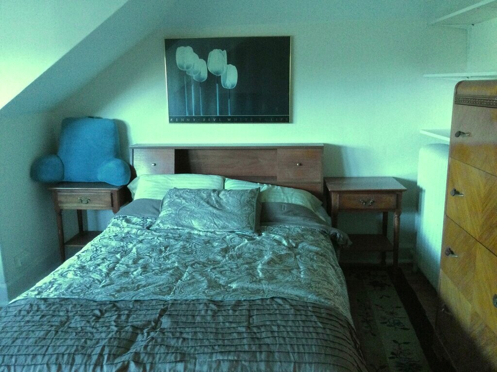 Furnished. 3br 2 bath plus guest room and sun porch. Located on the 3rd floor of a large Victorian house. Has separate front and back entrance. Each bedroom is furnished with a full sized bed and study desk. Rent includes heat and cooking gas. Cats ok. No smoking. Large yard with parking available. $35 application fee. Please call to schedule a tour.