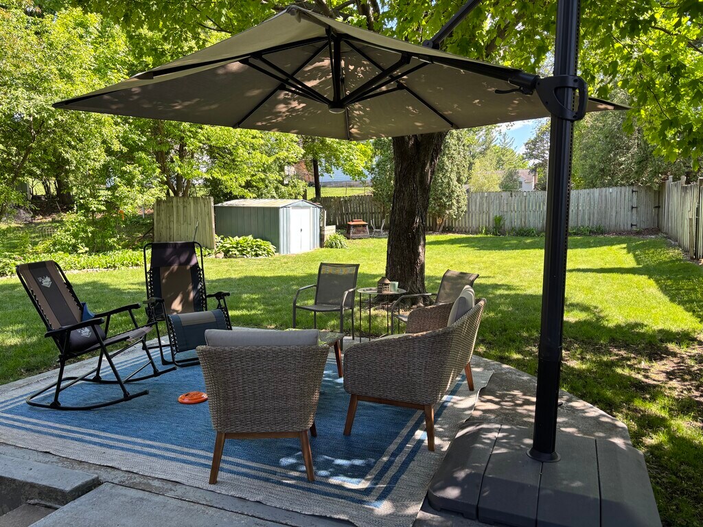 1 bedroom, 1 bath apartment, partially furnished with ALL utilities including Wi-Fi. 2 blocks from Mayo Clinic St Mary's Campus with access to shuttle to the downtown clinic. Includes direct access to the garage space for 1 car and 2 private keyed entrances from the garage and back yard. The kitchenette includes a refrigerator, Cuisinart Double Induction Cooktop with compatible pots and pan, basic dish set, microwave, Crock Pot, rice cooker, toaster oven, disposal and Washer Dryer combo unit. The living room includes a sofa, chair, lamp, TV with a stand and breakfast table for 2. Bedroom includes a queen bed, night stand, lamp and dresser. The bedroom photo will be uploaded after the new bed frame arrives. Photo available upon request now. Outdoor space is shared with homeowners. This is a non-smoking and non-vaping property, including outdoor space. No pets, only registered service animals.