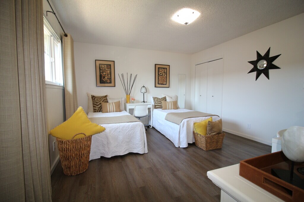 Furnished 2BR/1.5BA Townhouse, No neighbors below or above you! Two townhouses available Aug. 1! This well-maintained 1,010 sq. ft. furnished townhouse offers 2 bedrooms and 1.5 baths in a quiet neighborhood away from party life. Ideal for those seeking a peaceful environment. Property Features: 2 bedrooms 1.5 bathrooms 1,010 sq. ft. 2 assigned parking spaces (no extra parking fee) On-site coin laundry Maximum 4 occupants No pets No smoking of any kind Quiet neighborhood must respect neighbors (no parties) Co-signer accepted for full-time students Furnishings Include: 2 to 4 extra-long twin beds, desks, couch, chairs, kitchen table, coffee and end tables, mirrors, and some lamps. (Furniture varies slightly between units but is similar in quality and layout.) Tenants provide their own linens, kitchenware, cleaning supplies, desk chair and TV. Lease Terms & Requirements: Tenant pays electricity, internet, and/or cable Security deposit equal to one month's rent Credit score of 680+ required Income must be 2.5x monthly rent Additional $100 per month for the 3rd and 4th person. To request a showing, contact us for the application link. Please print and return the completed application via email or text. For security purposes, SS numbers are not requested until we meet in person and prior to processing the application. Please do not include SSN or bank account information in the initial submission. Offered by JK Properties CA DRE Lic. #01406976 The owner pays for water and trash. Tenants pay for cable, internet, electricity and renters insurance.
