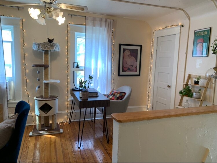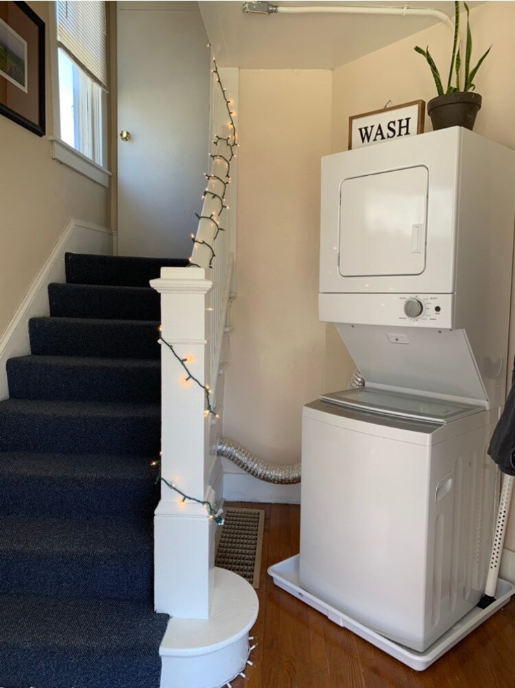 1 Bedroom 1 Bathroom 2nd floor of the house Clawfoot tub with shower Private porch Dishwasher and Fridge Compact stove & oven Large living room Lots of storage space Wood, vinyl, and carpet flooring Street parking Stacked washer and dryer Tenants pay all utilities. Tenant pays their own electric owner bills for gas and water. (34% of gas for house and water is divided by the number of tenants in the house.)