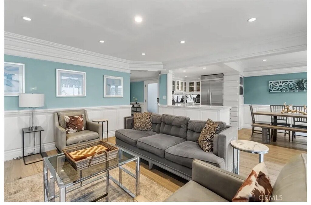This fully remodeled, fully furnished or not - your choice, lower level of duplex, coastal contemporary beach home offers luxury furnishings and a turn-key solution to meet your full or part time needs. This immaculate, meticulously maintained 3 bedroom and 3-bathroom home is located on one of best streets and central locations on the peninsula. Just one house away from the bay with close proximity to all the harbor activities, world class beaches (1 block away), Marina Park, restaurants and shopping. Ride your bike down the boardwalk to the famous "Wedge" for surfing or to the Fun Zone for lunch and then to Balboa Island by ferry. Paddle your kayak to dinner or visit the Newport Pier just a few blocks away. Enjoy the beach lifestyle at its finest! This beautifully renovated home offers limestone tile flooring throughout, custom moldings and a newer kitchen with built-in refrigerator, breakfast bar, stainless appliances and Carrera marble countertops. The kitchen opens to the adjacent family room and dining area with 3 sets of French Doors that open to the ultimate outdoor living/entertaining space with spacious stone patio, built-in BBQ island with granite counter, fire pit with stone top and custom seating for large groups. The spacious primary suite features a designer bathroom with Carrara marble countertop and tile floors and shower; dual elevated stone vessel sinks and seamless glass shower enclosure. The secondary bedrooms have their own private bathrooms that feature mosaic tile and Carrara marble countertops. One of the secondary bathrooms offers a tub/shower. A private center courtyard is ideal for relaxation.