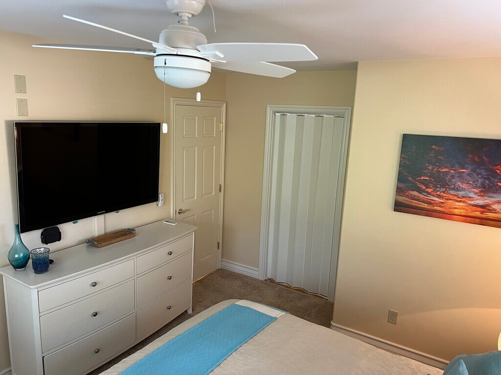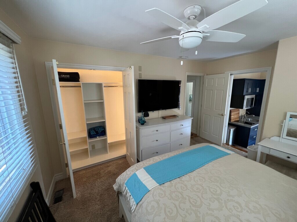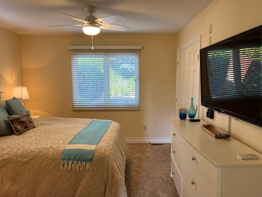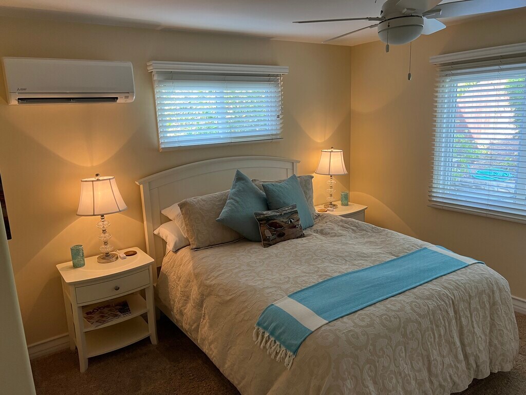 The furnished apartment is part of the owner-occupied house but entirely private. The main house and apartment are separated by a hallway door which is locked on both sides for security. Utilities, water, trash and internet are included in the rent. The property is a newly remodeled four-bedroom, three-bathroom home done in a modern Santa Barbara Craftsmen style with an ocean view. The private accommodations were expanded in 2022 to feature a small front room with ocean view. The front room has a kitchen including small countertop with cooktop, toaster oven, sink, garbage disposal, coffee maker, microwave, pure drinking water faucet from undercounter RO system and full-size refrigerator/freezer with ice maker. Full kitchen supplies such as dishes, pots and pans and utensils are provided. There is a dining table with stools and small sofa for relaxing. Adjacent to the front room is the private bedroom that features a queen size bed, large flat screen TV with Roku, YouTubeTV and ample storage in a large dresser, two nightstands and closet with shelves and hanging space. The bedroom is nicely appointed with high-end bedding, furniture, and digital clock radio. The bathroom is finished with Italian tile and custom glass tile highlights. An iron and ironing board are provided. The property is landscaped, and the backyard offers a table, fire pit and sitting area for guests to relax in the evening. Total rent of $2,600/month includes water, trash, electricity, internet and media streaming service for YouTubeTV, Netflix, and Prime. Lease duration is 6 months, then month to month. One month rent of $2,600 is required for the security deposit. Free parking is on the street and unrestricted any day of the week or month. No smoking/vaping allowed inside the apartment or on the property. Cleaning service is available every other week for $95 per visit. A laundromat is located nearby at the Mesa shopping area. Amenities include: Central air conditioning Furnished Bicycle storage Air conditioning and heating All kitchen items provided Backyard patio with table and chairs Firepit with chairs Fully furnished High speed internet RO filtered drinking water