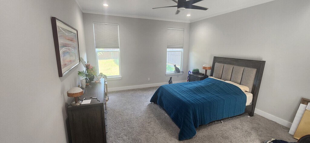 Enjoy an Urban Oasis. This 4-bedroom, 2-bathroom contemporary ranch is practically new and in immaculate condition. It is centrally located just south of downtown Dallas, near Bishop Arts, the Dallas Zoo, and soon-to-open Halperin Park, with easy access to I-35, I-30, I-45, and the Dallas North Tollway. Downtown, Uptown, Oak Lawn, Trinity Groves, and other popular spots are just minutes away. The home features large rooms with high ceilings, a spacious living-dining-kitchen area with a huge waterfall island, a good-sized yet manageable backyard with two mature trees, and a two-car attached garage with a 220-volt outlet for an EV charger. Perfect for families, couples, individuals, or other living situations. This is a very family-friendly neighborhood and all are welcome, including your pets. The primary bathroom features a double vanity, shower, and garden tub. The home is set up for cable and/or high-speed internet, and a full-size washer and dryer are included for laundry convenience.