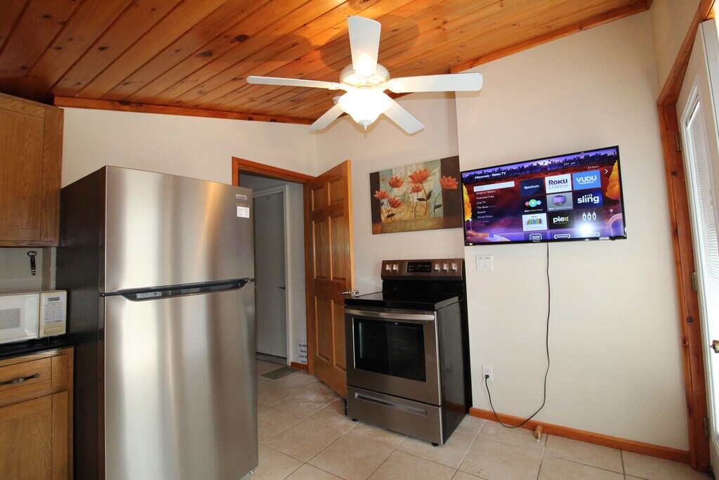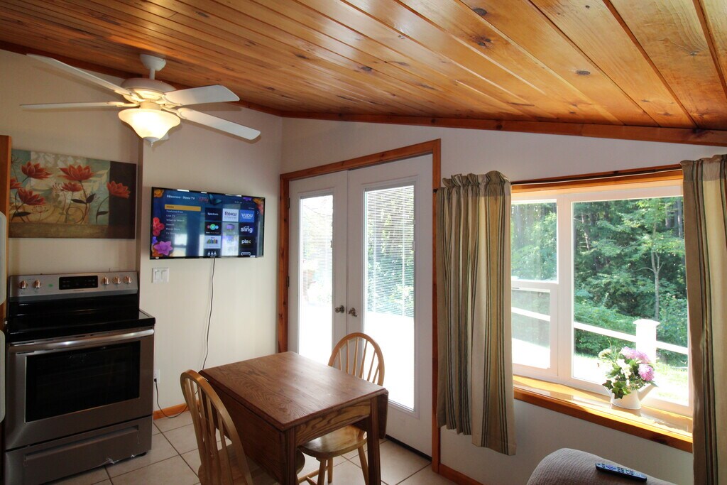 This is a cozy, ground floor, one bedroom apartment with s a king size bed, one full bath, a comfortable living room with a large flat screen TV, and kitchen/living room combo. High speed wireless internet (Wi-Fi) and air conditioning are standard amenities included with all our rental properties. It has a full size refrigerator, electric range, microwave and an updated tile floor and tile backsplash. The bathroom is fully tiled with a Jack-and-Jill shower and a heated granite floor. There are 2 smart flat screen Roku TV's in this apartment. There is an on-site, shared laundry facility and shared back yard. There is ample off-street parking. Short term lease. In a quiet, residential neighborhood on Goodyear Lake, suitable for one individual who loves nature and the quiet life. Additional fee for double occupancy. This property is leased as of 5/22/26, so no extension of the lease is possible. Perfect for traveling nurse or professional looking for short term accommodations. All utilities, landscaping and plowing of parking area included. ABSOLUTELY NO SMOKING, NO VAPING, NO PETS OF ANY KIND. NO EXCEPTIONS.