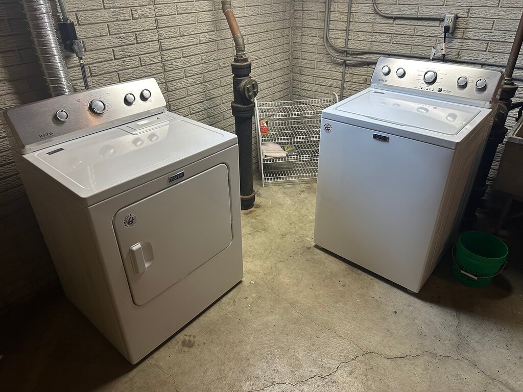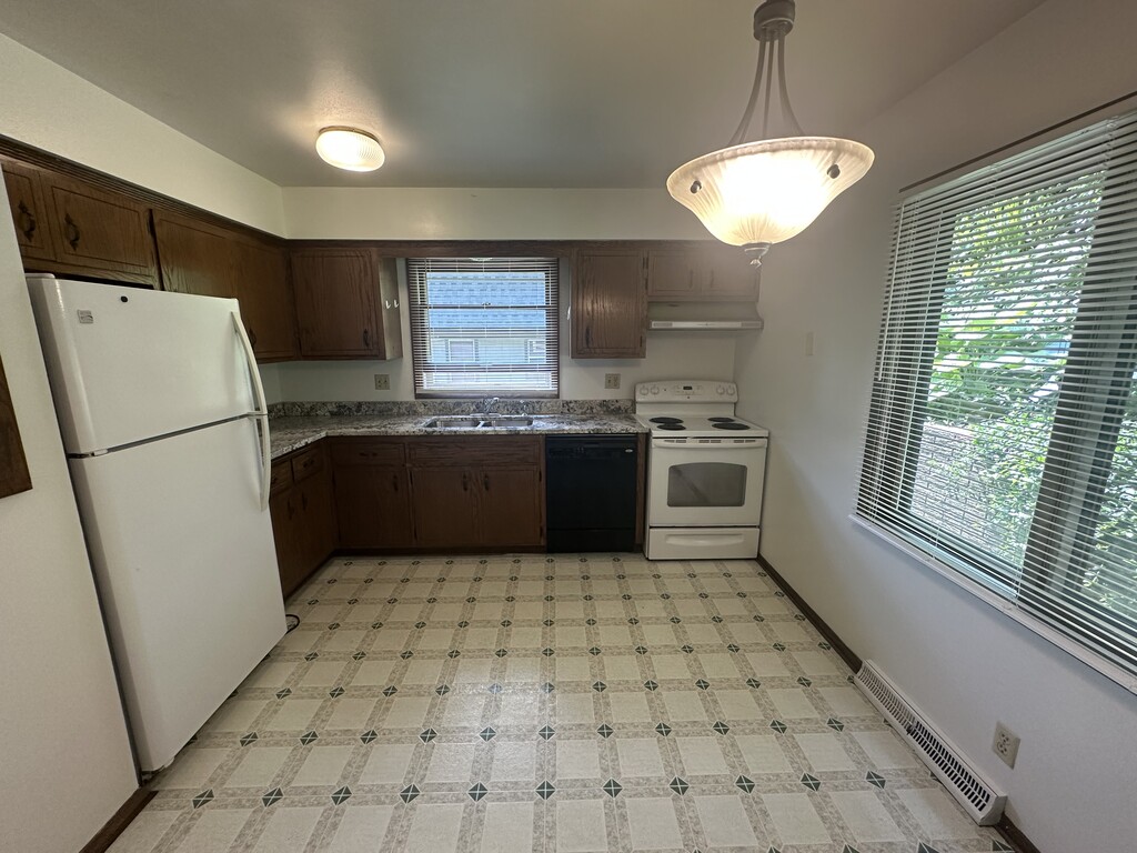 2 Car Garage Parking included plus the driveway. New kitchen and bathroom countertops. Dishwasher and dedicated laundry machines for this lower level duplex. Private outside area in the back.
