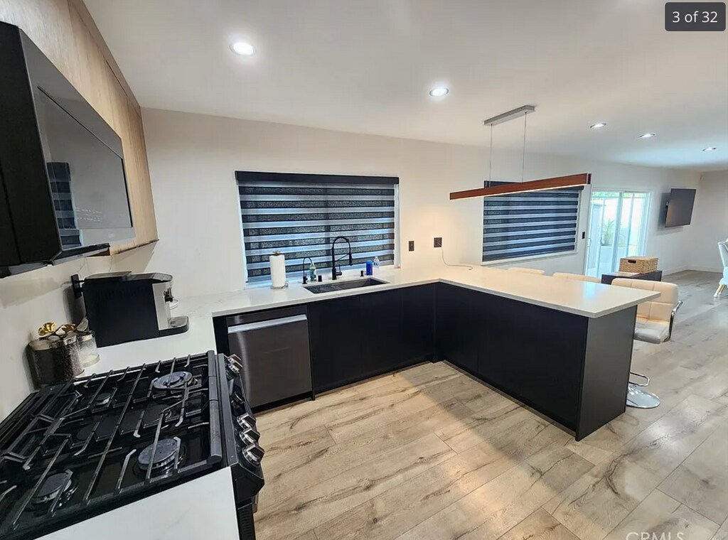 Welcome to this stunningly remodeled 4-bedroom, 2.5-bathroom home in the heart of Granada Hills. Step inside through a beautiful modern entrance and enjoy an open-concept floor plan filled with natural light, sleek finishes, and designer details throughout. The spacious living area flows seamlessly into the chef's kitchen, featuring custom cabinetry, a wine cellar, and high-end appliances perfect for entertaining. Upstairs, enjoy unique architectural lighting accents, a contemporary staircase, and generously sized bedrooms. The primary suite boasts a spa-like bathroom with dual sinks, modern fixtures, large tub and a walk-in shower. Additional features include automatic blinds, energy-efficient upgrades including solar panels, and stylish wood accents that bring warmth to the modern design. Outside, relax or entertain in the private backyard with low-maintenance turf and a spacious driveway. Located near top-rated schools, parks, and shopping, this home combines modern elegance with everyday convenience. Small pet ok Tenant pays Utilities Washer dryer included EV charger