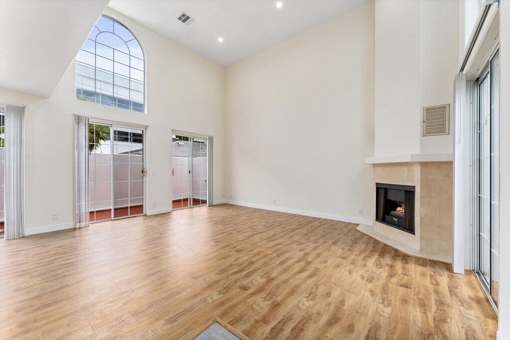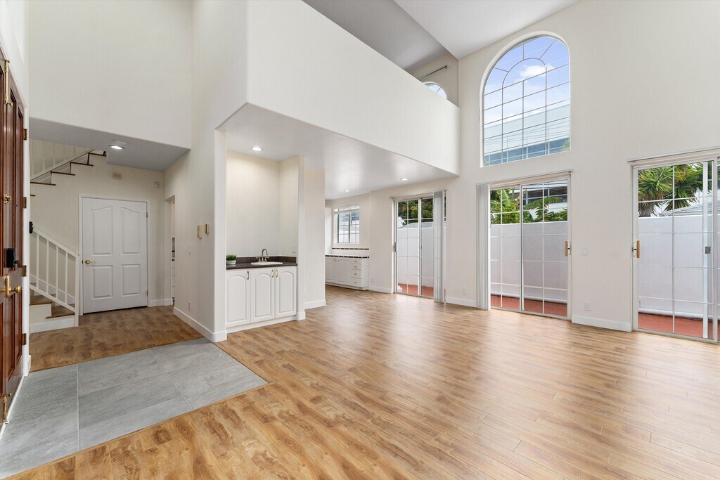 Dramatic, front-facing townhome with four private outdoor spaces in amazing location in close proximity to restaurants and upscale shopping. Upon entering, you are greeted by light flooding into living spaces and ~20 foot ceilings. Recently updated kitchen with stainless steel appliances, new quartz countertops, and backsplash. Spacious great room featuring beautiful wood flooring, fireplace, and private patio running the length of the unit. Enjoy ocean breezes through sliding doors on both sides of the great room. Head upstairs to loft, which overlooks the great room and is the ideal spot for a home office. Loft has small, adjacent room with a window that could be a second office or bonus space. Continue to two generously-sized bedrooms, both with en-suite baths and balconies. On the top level is a large private roof deck. Private 2-car garage with direct access and extra storage. Park your vehicles or make it your home gym. In-unit laundry, gated, intimate 5 unit building & Santa Monica schools. Too many other features to list!