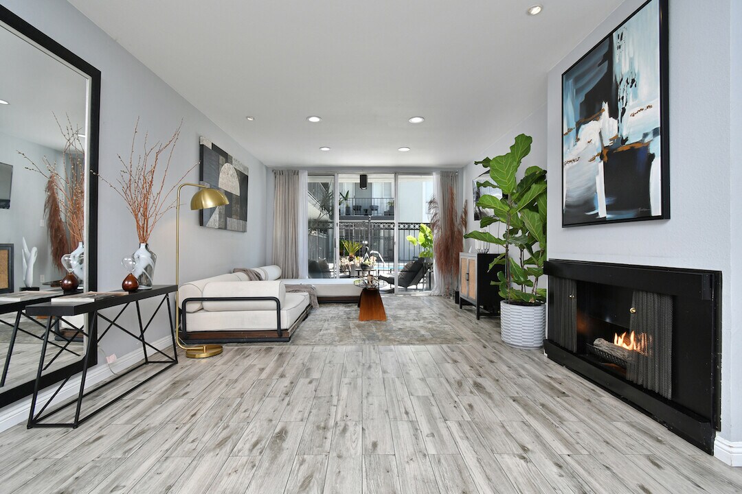 Experience luxury living in the heart of prime West Hollywood! Step inside this stunning 1-bedroom, 1-bathroom condo, where large floor to ceiling windows fill the interior with natural light throughout. The spacious living area, complete with fireplace is perfect for both relaxation and entertaining. Sliding doors open to your own private balcony which overlooks the sparkling pool. The stylish kitchen maximizes space with quartz countertops, stainless steel appliances, abundant cabinetry, and bar seating for guests. Retreat to the well-appointed bedroom which offers generous space and a large closet. The elegantly designed bathroom showcases modern fixtures and finishes, featuring a shower and a large vanity with abundant storage. Other features include assigned parking, a new gym, and a red-light therapy room, all blending convenience with luxury. For added security the building offers controlled access and a gated parking garage. Discover the vibrant surroundings with ease at this must-see gem, conveniently located near the iconic Sunset Strip! Just steps away, you'll find the legendary Chateau Marmont Hotel, world-class dining, trendy boutiques, exceptional shopping, and endless entertainment options right outside your door!
