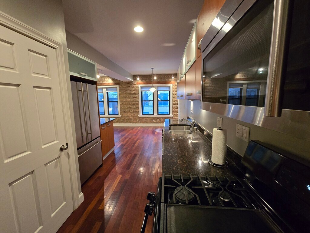 Welcome home to this charming and light-filled 1-bedroom, 1-bath condo, less than a block to the lakefront in Rogers Park! This beautifully maintained home features stunning exposed brick walls, hardwood floors, and abundant natural light throughout, creating a warm and inviting atmosphere. The updated kitchen is equipped with granite countertops, stainless steel appliances, a brand-new stove/oven, dishwasher, and a convenient in-unit washer/dryer combo perfect for comfortable everyday living. Generous closet space and a dedicated storage locker provide plenty of room to stay organized. Enjoy central air, forced-air heat, and the character of a classic brick building with modern updates. Located just steps from Loyola Beach and the lakefront, and close to Loyola University, Northwestern University, the Morse Red Line, Metra, and the vibrant Glenwood Arts District. Surrounded by local cafes, restaurants, shops, and parks, this home offers the best of city living with a neighborhood feel. Highlights: - Exposed brick & great natural light - Updated kitchen with granite counters - Stainless steel appliances - In-unit laundry - Hardwood floors throughout - Additional storage included - Prime Rogers Park location near transit & lakefront - Parking options: Street or city garage parking available - Furnished option available A perfect blend of vintage charm and modern convenience, don't miss the opportunity to make this inviting condo your next home!