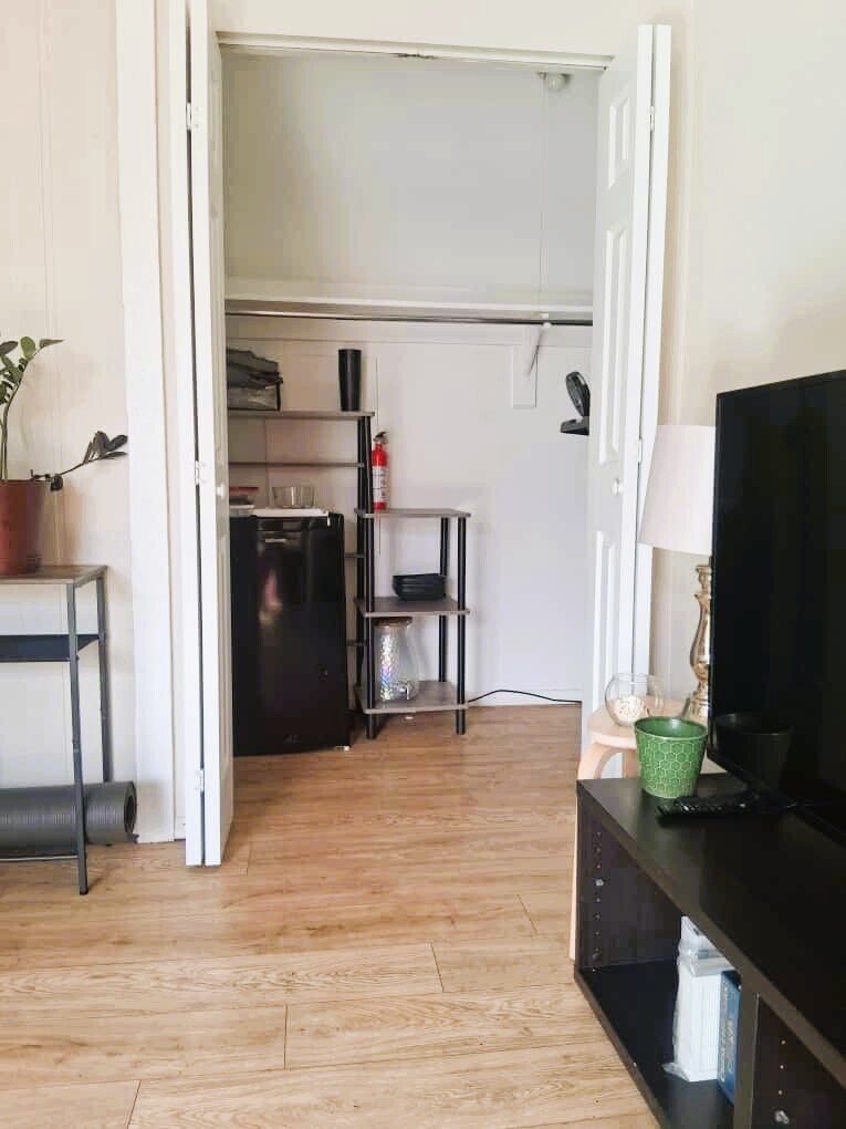 This is a private upstairs room, bathroom, and patio in our condo near Heather Gardens in Aurora. The Unit is part of our house, but is completely private with locks and includes WIFI, 48 in smart TV, mini gym, and mini-fridge, 2 closets, and fold-out futon - all in a separate space. My husband and I have our own bedroom/ bathroom downstairs. The kitchen, LG washer and dryer, living room area, and downstairs patio + grill are all shared spaces you will have full access to. The room is available furnished or not furnished on a month-to-month signed lease up to 1- year. $900/ mo and $600 Security deposit - lease is required. No large animals, smoking only outside. Will need to show proof of income. This is a month-to-month lease with a maximum renewal of 12-months.