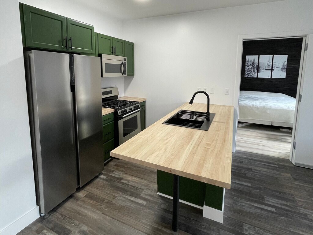 Beautifully remodeled one bedroom, two bath, in the luxury condominium development, The Mason. This freshly painted unit just completed a renovation with newly installed flooring, countertops, toilets, fixtures, hardware, and black out shades. Mountain views of Deer Valley Ski resort, simply across the street, from Juliette and living room balcony. Gas fireplace, new refrigerator, secured heated garage parking, Washing and dryer units available on floor level. The Mason has secured building access, keyless entry unit, bike storage, fully stocked ski shop, gym, game room, updated pool area, jacuzzi, sauna, outdoor seating area and community fire pits/grills. Easy access to water sports and hiking at Jordanelle Reservoir located behind the complex. Monthly rent includes electricity, gas, water and garage parking. Seasonal lease from 4-6 months, 3995. Occupancy may not exceed two people. No smoking.