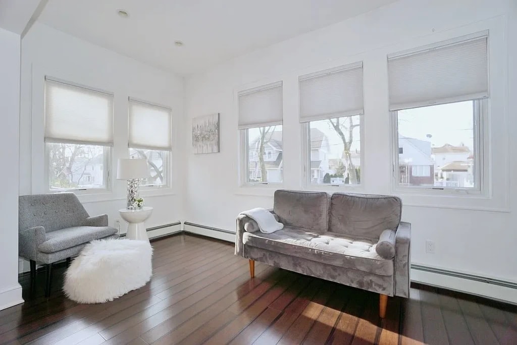 Absolute perfection for rent! This beautifully renovated three-bedroom, two-bath Colonial in the heart of New Dorp offers approximately 1,800 square feet of living space, plus a full finished basement. Fully gut-renovated in 2014 (including roof, exterior, electric, and plumbing), the home blends classic charm with modern living. Features include bamboo hardwood floors, 9-foot ceilings with recessed lighting, and a spacious open layout. The chef’s kitchen boasts custom cabinetry, granite countertops, a large island, farmhouse sink, and stainless steel appliances, flowing seamlessly into the dining and living areas. Anderson doors lead to a private, maintenance-free backyard—perfect for relaxing or entertaining. Upstairs offers three generously sized bedrooms, a full bath, ample closet space, and a walk-in closet in the primary bedroom. The second floor has its own heating and A/C zone for added comfort. Additional highlights include a renovated oversized detached garage, updated landscaping and hardscaping, turf backyard, two-zone natural gas baseboard heat, central A/C, and a tankless on-demand hot water system.