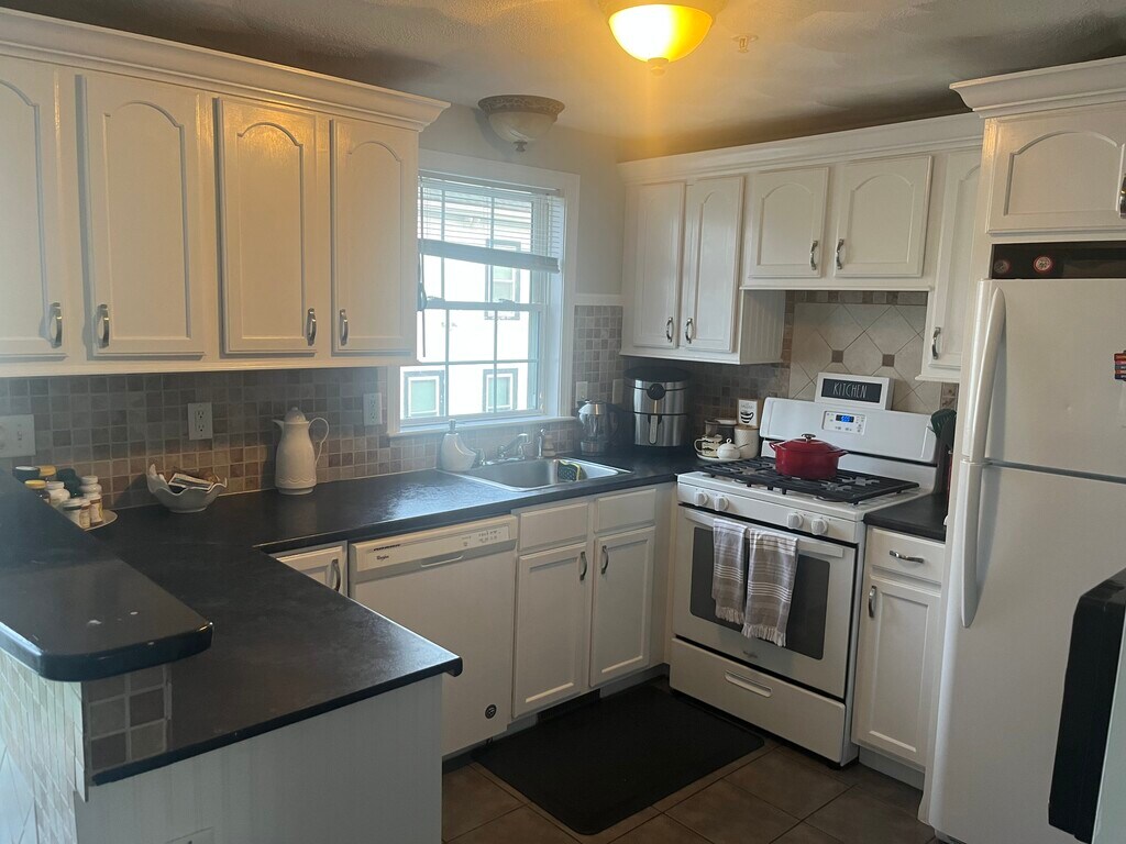 2BR, 1.5 bath townhouse style apartment in Acre area of Lowell features air conditioning, attached garage space (plus outdoor parking), storage area in basement and attic, in unit laundry and back deck with fenced in yard space, $2,600/mo.