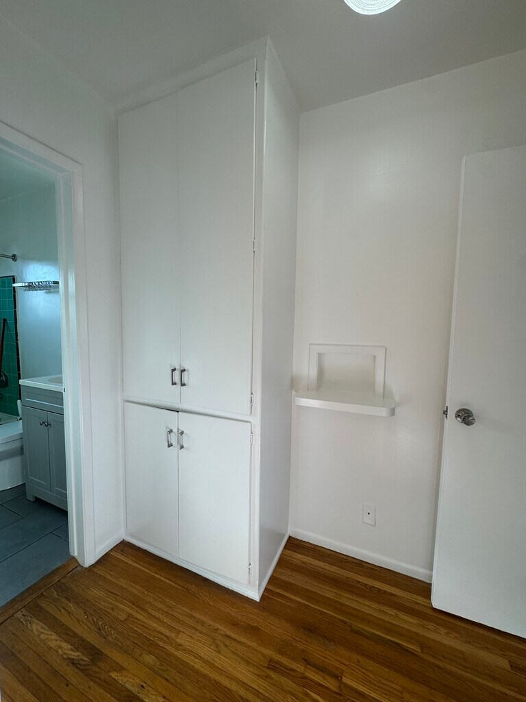Full of natural light with built in storage in every room. Make this one bedroom apartment your new home. Hardwood floors in living room hallway and bedroom reflect the warm sunlight. Newly tiled bathroom and kitchen floors keep things sleek, clean, and functional in the bathroom and eat-in kitchen. Updated and remodeled bathroom. Stainless steel stove, refrigerator, and dishwasher. Flexible lighting in dining area and kitchen. Independent under cabinet lights, pendant, and shelf. Keep organized with built in storage in every room—large coat closet, linen cabinet, wall to wall closet with multi level storage/drawers. The surrounding neighborhood is thriving with restaurants, coffee shops, supermarkets. Beautiful gardens and landscapes up and down the streets. Give us a call to schedule a tour. Thank you and good luck on your search.