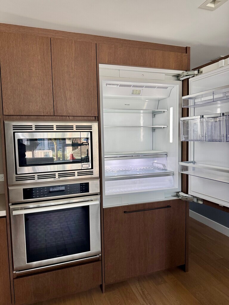 Experience elevated downtown living in this beautifully appointed partially furnished 1-bedroom, 1-bath residence at Savina, ideally located just steps from the Embarcadero waterfront, Little Italy dining, and waterfront pickleball courts, with easy access to downtown, freeways, and public transit. This thoughtfully designed home offers approximately 720 sq ft of bright, modern living space, featuring hardwood floors throughout, motorized Lutron shades, and high-speed fiber internet included for fast, reliable connectivity. The kitchen is outfitted with high-end Thermador appliances, sleek cabinetry, and clean finishes—perfect for everyday living or entertaining. The unit is partially furnished and includes a queen bed, sleeper sofa, cabinet, and a desk with chair, offering flexibility for a variety of living needs. Step outside to your private balcony overlooking the pool, complete with a patio dining set—perfect for al fresco dining, morning coffee, or relaxing evenings. Additional highlights include an in-unit washer and dryer, custom built-in closets, and an assigned extra-large garage parking space—a rare and valuable feature in downtown San Diego. In-building storage is also available for an additional fee. Residents of Savina enjoy access to an exceptional suite of amenities, including a 24-hour concierge, resort-style pool and spa, fully equipped fitness center and sauna, pet retreat, resident lounge and community spaces, business center, and EV charging stations (ChargePoint). Minimum 6-month lease; flexible longer-term options available. Dogs under 50 lbs will be considered with an additional fee.
