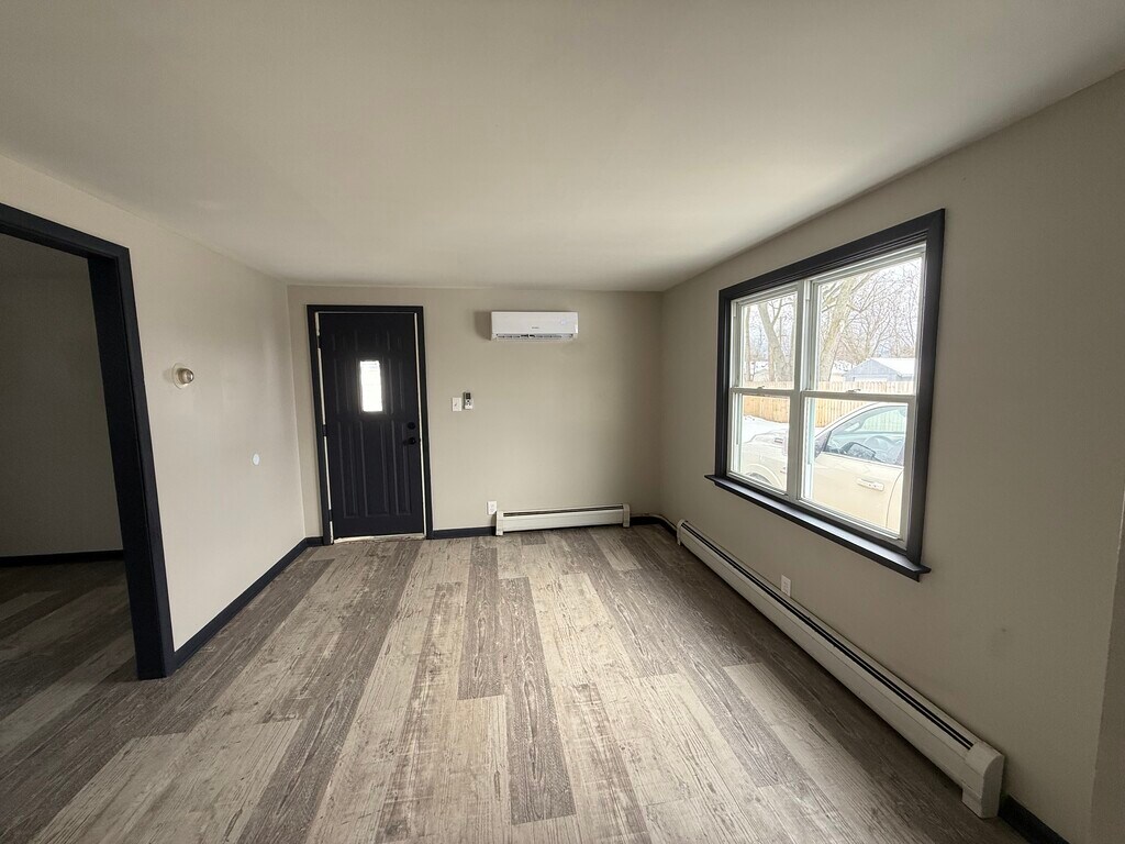 Welcome to this adorable completely updated one bed unit . Unit is on first floor with own back entrance . Drive way for parking and large yard to relax in during summer . Plowing service during winter . Laundary hook ups in basement . Has one large bedroom and completely renovated bath. Kitchen is stocked with stainless fridge, gas stove and above range microwave. First and security due at signing . Month to month lease. Proof of income and previous living due upon submission of application. No pets at this time . Available January 15th