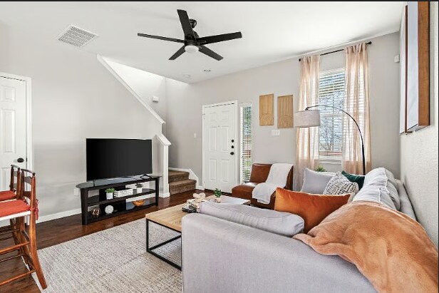Welcome to our beautiful 3 bedroom, 2.5 bath townhome in North Austin! This lovely home provides all the modern amenities needed for a comfortable stay. We are conveniently located near all the popular attractions in the area including The Domain, Austin FC Stadium, Downtown, and within walking distance of pickleball courts, neighborhood parks, and trails. The home and location, provide all the necessary amenities, shopping, and activities for an enjoyable stay in North Austin. The space - Fully Stocked Kitchen - Two Designated Workspaces (one downstairs, one upstairs, and one monitor) - Smart TV including all your favorite streaming apps - Black-out Curtains in the bedrooms - Noise Machine - Washer & Dryer - Private Parking & Fenced-in Yard - Yoga/Workout Mat & 10lb Weights - The Pitch and PopStroke the neighborhood park are within walking distance - Walking Trails - Pickleball Courts (paddles available for rent at the facility) - Sand Volleyball Court & Soccer Field - Board Games & Card Games - Luxury 100% Egyptian cotton sheets - A short distance away from major corporations (St. David's Hospital, Samsung, Apple, Amazon, Dell, FB, Oracle, Tesla) and The Domain Additional Benefits for Our Guests: - Always sanitized for your comfort & safety - Multiple parking options for your car including garage - Smart thermostats for easy temperature control - Smart TV included in the Living Room & Master Bedroom, and second bedroom - Basic supplies and toiletries are all provided for your stay - For more information about the space and area, please see below! Once you step inside, you'll be greeted by a bright and airy living area, complete with comfortable seating, a large TV, and plenty of natural light. The adjacent dining room features a dining table and chairs and leads into a fully equipped kitchen with everything you need to prepare delicious meals during your stay. Upstairs, you'll find three cozy bedrooms, each with its own bed and ample closet space. The master bedroom features a luxurious king-sized bed, a large walk-in closet, a 43" flat-screen TV, and a private en-suite bathroom. The second bedroom has a queen bed, a closet, and a 43” TV. The third bedroom features another queen bed and a dedicated workspace. For remote workers and business travelers, there are two dedicated workspaces available in the home. The first workspace is located downstairs and features a desk and chair tucked away in the corner of the living room. The second workspace is located upstairs in the third bedroom and includes a desk, chair, monitor, and lamp for your convenience. We are close to major corporations such as Dell, Samsung, Apple, and St. David's Hospital. For those who love the outdoors, we are an 8-minute walk to The Pitch, home of the Austin FC Sports Complex, which provides a variety of amenities including pickleball courts, food and drink venues, outdoor seating & TV viewing areas for movie nights, and sporting events. Enjoy peaceful evening walks on the trail surrounding the lake. The townhome is also less than a 5-minute walk to the community park which provides additional walking trails, a sand volleyball court, a disc golf course, workout bars, and a soccer field. Our local grocery store, H-E-B, (Texas's most popular supermarket chain), is just a 5-minute drive away. Additional restaurants, coffee shops, and entertainment are in the area surrounding the H-E-B. There is also a Whole Foods Market and a Trader Joe's 15 minutes from the property, so you can easily find all your favorite organic and specialty items. When it comes to dining, shopping, and entertainment, you'll be 15 minutes from The Domain, a premier destination home to the best restaurants, shops, and entertainment in the area. If you're looking for even more excitement, you’re only a 20-minute drive from the vibrant nightlife, live music scene, and world-renowned restaurants of downtown Austin. Whether you're visiting North Austin for work or pleasure, our beautiful home is the perfect place to call your own during your stay. We look forward to hosting you while you experience all that the amazing city of Austin has to offer!