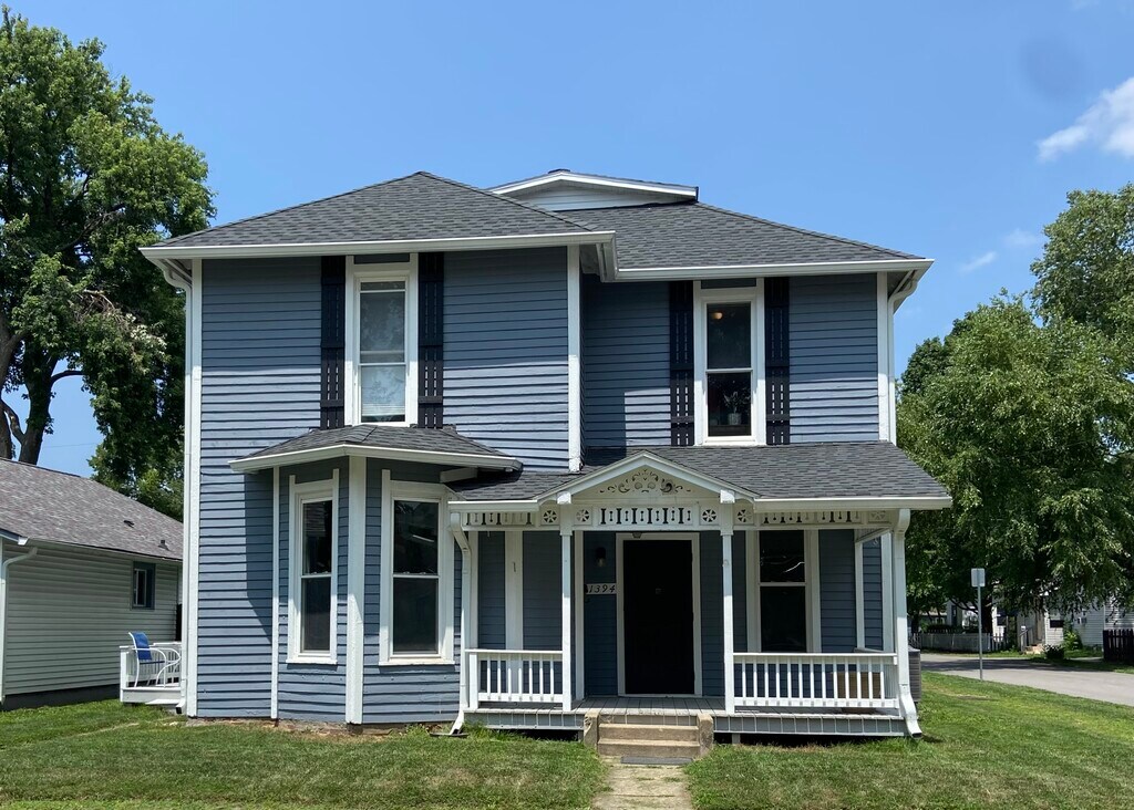 Vintage charm and elegance a few cobblestone steps from Noblesville's historic square! You'll fall in love with this bright and sunny, one bedroom and one bath second floor home. It's hard to decide what you'll love more about this Queen Anne duplex - its character and potential, its spectacular corner lot and large common yard, or the convenience and desirability of its historic Noblesville location. Many classic features including arched doorways, some original hardwood flooring, eat-in kitchen (with all appliances) along with a newer windows, central HVAC, common laundry and much more! There is ample on-street parking. You will be just blocks away from commuting, shopping, dining, entertainment and Noblesville's historic square!