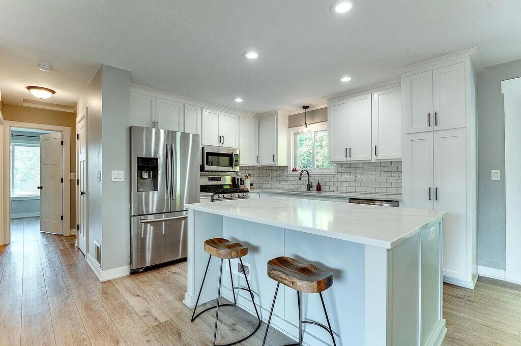 This beautiful, newly remodeled home boasts an open floor plan, new custom built kitchen with white cabinets, quartz countertops, oversized center island, new doors, baseboard, trim, new entry railing, built-in coat rack, new light fixtures, new flooring, remodeled bathrooms with white shiplap walls, all settled in a quiet cul-de-sac. Walking distance to 3 parks. Other recent updates are cement board siding, furnace, a/c. This home is within walking distance from Lifetime Fitness and Hyvee.