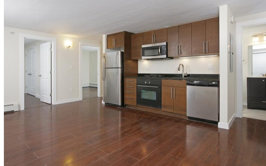 Chic & modern unit in newer Brownstone style building that features: - Hardwood flooring throughout! - High end, fully equipped kitchen! - Stainless appliances - dishwasher! - Open layout w/ high ceilings! - Spacious & sunny living room! - 4 large equal sized bedrooms! - 2 updated tiled full bathrooms! - Convenient in unit washer & dryer!