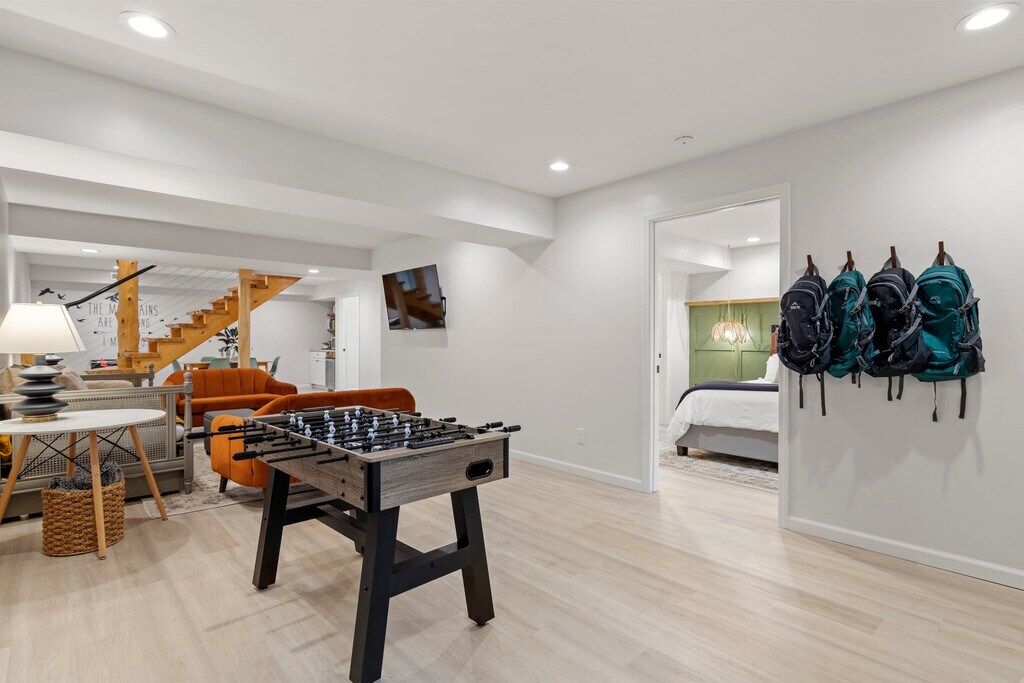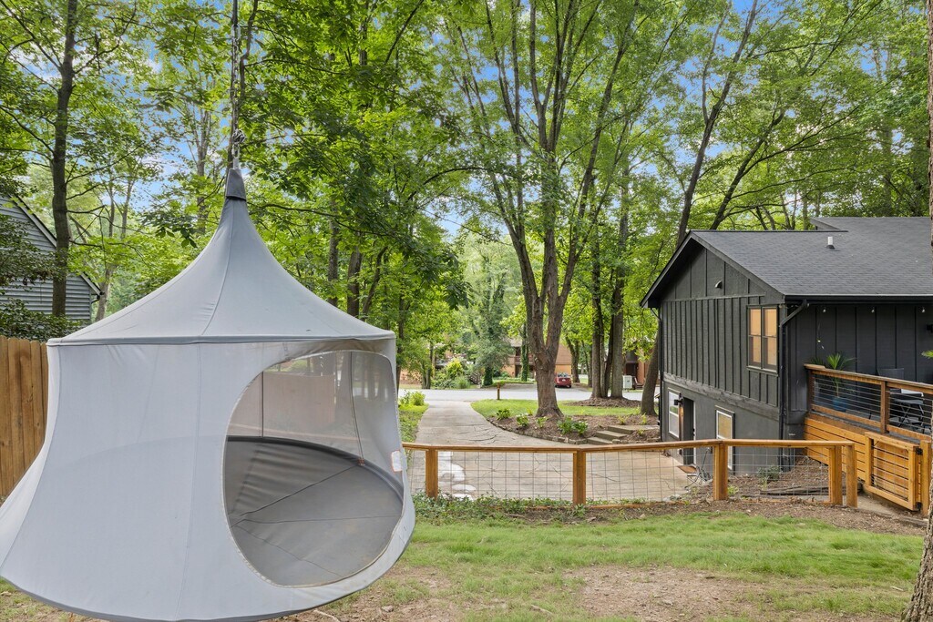 Fully furnished 4 bedroom, 4 bathroom home located just minutes from Asheville, Hendersonville, and Brevard. Designed with families in mind, this home offers generous space, privacy, and a layout that makes day to day living comfortable and easy. Sleeps 8 comfortably in bedrooms, with additional sleeping options in the downstairs living area. Fully fenced backyard included. Location Overview Convenient access to schools, groceries, dining, and major routes, making everyday routines simple. 2 minute drive to Asheville Regional Airport 5 minute drive to restaurants, grocery stores, and local breweries 20 minute drive to Downtown Asheville and the Biltmore Estate School Districts Elementary: Glen Marlow Middle: Rugby Middle High: West Henderson Home Layout and Bedrooms The layout allows families to spread out while still sharing common spaces. Bedroom 1: Upstairs primary bedroom with a king bed, private bathroom, TV, walk in closet, and desk for work or study. Bedroom 2: Upstairs queen bedroom with TV, sharing a hall bathroom with the twin room. Bedroom 3: Upstairs bedroom with twin beds and an additional roll away cot, sharing the hall bathroom. Bedroom 4: Downstairs primary bedroom with a king bed, private bathroom, TV, walk in closet, and desk. Includes a crib and pack and play for families with young children. Bathrooms Four full bathrooms with quality finishes and plenty of storage. Two bathrooms include tub and shower combinations, and one offers a walk in shower. Bathrooms are stocked with plush towels and everyday essentials. Kitchen and Living Areas Kitchen is fully equipped with stainless steel appliances, granite countertops, and custom cabinetry. Ideal for cooking daily meals or quick takeout nights. Two living areas allow children and adults to enjoy separate spaces when needed. Upstairs living room features a sectional sofa, fireplace, and 55 inch TV. Downstairs living room includes a daybed couch with trundle, plus foosball and air hockey Outdoor Space Large 500 plus square foot deck overlooking a fully fenced backyard. Outdoor seating and a grill make it easy to enjoy meals and playtime outside. The fenced yard provides a safe area for little ones and pets. Accessibility Notes The downstairs entrance door is 36 inches wide. The downstairs bedroom and guest bathroom also have 36 inch wide doors. The downstairs bathroom includes a step in shower. A table downstairs can be used for dining, along with a small refrigerator. While this house is not fully accessible, many concessions have been made to the downstairs to make this house as accessible as possible. There is even the possibility of accessing the back deck by going around the side of the house if you have a mobile ramp.