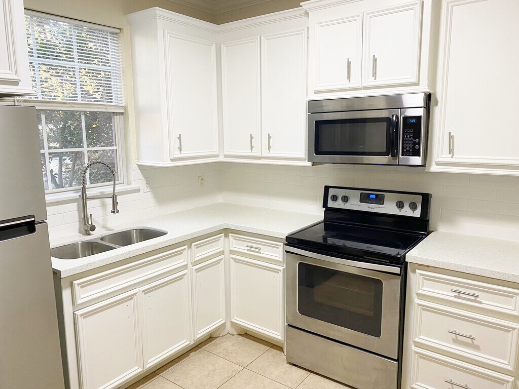 Fully Furnished. All utilities are included in rent. Available for 3-9 months, This is a no pet and No smoking/vaping on property unit. Rate is for 1 occupant, add $100 for 2. 15-30 minutes to several hospitals (Conroe/The Woodlands). Located 9 miles west of Conroe, TX in the secure April Sound subdivision with 24 hour staffed gate entrance and 24/7 patrol cars. Ground floor. New kitchen with quartz countertops, subway backsplash, nickle cabinet hardware, and chef style faucet. Complete cooking items, linens & towels, 40" Roku TV with Hulu Plus (has all the channels cable has plus dozens more). Smaller TV in bedroom. Stainless steel full size washer and dryer, fridge with ice maker, full size 4 burner range with oven and over the range built in microwave. Kitchen pantry with lots of shelves. All utilities including electricity, water, garbage pick up, and High Speed WiFi. Combo tub with shower. Queen size bed. Computer desk and chair. Dinette set with chairs. 2 closets (one is walk in). Crown moldings. Wood deck with furniture. Reserved parking 20 steps away right in front of unit. Everything needed for an extended stay. Country Club amenities available for $55/month if staying 6+ months. Visa/MC/Discover (convenience fee applies), checks, /Zelle accepted. If stay is longer than 4 months the HOA requires a one time registration fee of $75.