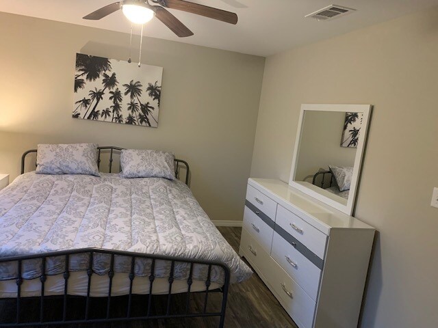 This Happy Beach House is located one block from the beach. You can see the water from your front porch when you are drinking your coffee. The property is fully furnished. Washer and dryer are available in the laundry room. Two flat screen TVs are available for movie nights in the living room and Master bedroom. Fully equipped kitchen with granite counter tops and stainless appliances. All utilities and the Internet are included in the rent. Month to month lease option is available,