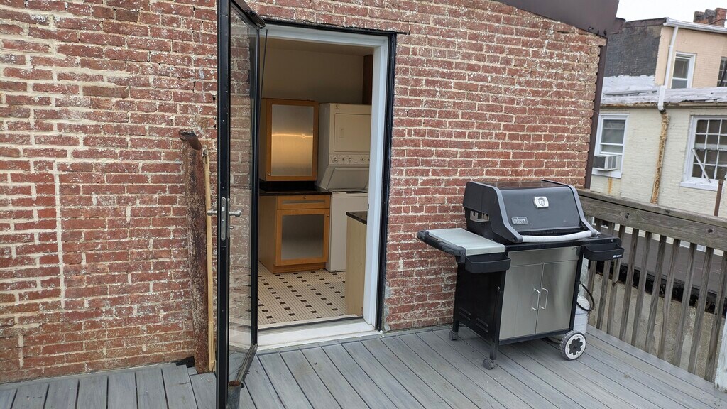 We are renting a studio apartment on the third floor of our house. Features - upgraded kitchen cabinets and appliances, granite countertops, washer/gas dryer, dishwasher, garbage disposal, full size gas range with built in microwave, tile bathroom and kitchen, large deck off the kitchen with a Weber gas grill, new window a/c. WiFi, heat, and water are included. Tenant pays gas and electric (separate meters). Although the apartment is totally private, access is shared through the front of the house. Photos are current. First month rent and 1 month security deposit due at lease signing. No application fee.