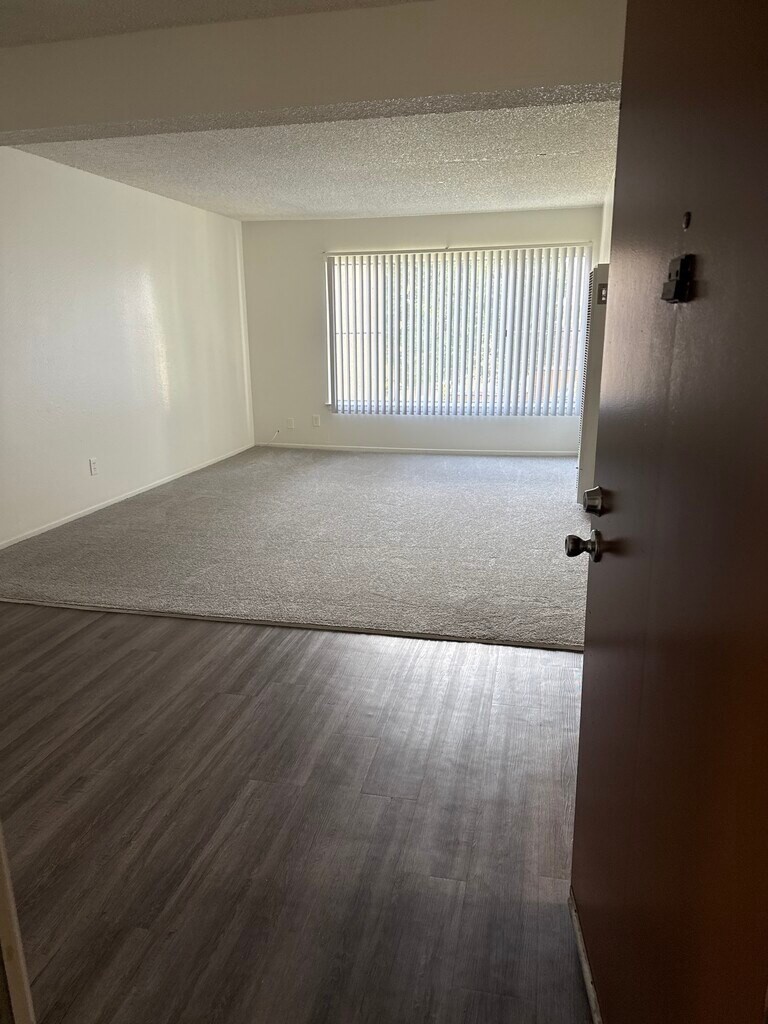 spacious 1-bedroom one-bathroom upper unit, freshly painted throughout. Vinyl floors throughout Brand-new carpet in the living room and bedroom Clean and bright with plenty of natural light Includes stove and refrigerator Quiet building Coin laundry on premises One assigned parking space Secure intercom entry system Professionally managed property 24-hour maintenance on site