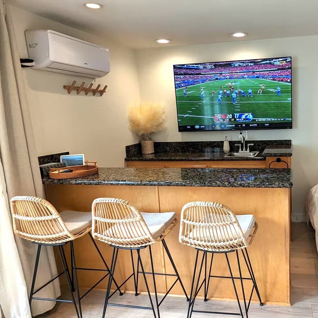 ***All BeachShift properties are in Long Beach and walkable to the beach, furnished monthly rentals from 1 month to 6 month term.*** FULLY FURNISHED, 1-month to 6-month term. Very unique 3-level beach area, one-of-a-kind condo, with a beach theme design. Brand new appliances and flooring. 1 Parking included, 2nd tandem parking spot available at an additional price. Private rooftop patio for you to enjoy a sun tan or a drink at the bar table. Vaulted ceilings, plenty of sunlight all day from North and West exposure. This property is away from Ocean Blvd traffic, while very walkable to the beach, best of both worlds. Loft for sports viewing and entertaining guests, and can be turned into a guest room or bedroom in seconds by just sliding the room curtain already in place. Private laundry area, right inside the unit. Walk across Ocean Blvd and you're already at the beach. Upper floor: loft and patio (loft could be used as 3rd bedroom) Middle floor: kitchen, dining room and living room, powder bathroom. Lower floor: 2 bathrooms + 2 bedrooms + in-unit laundry area Ground floor: attached shared building garage, for 1 or 2 vehicles All BeachShift properties are in Long Beach and walkable to the beach, furnished 1-month to 6-month beach property rentals. Upper floor: loft and patio (loft could be used as 3rd bedroom) Middle floor: kitchen, dining room and living room, powder bathroom. Lower floor: 2 bathrooms + 2 bedrooms + in-unit laundry area Ground floor: attached shared building garage, for 1 or 2 vehicles ***All BeachShift properties are in Long Beach and walkable to the beach, furnished monthly rentals from 1 month to 6 month term.*** FULLY FURNISHED, 1-month to 6-month term.