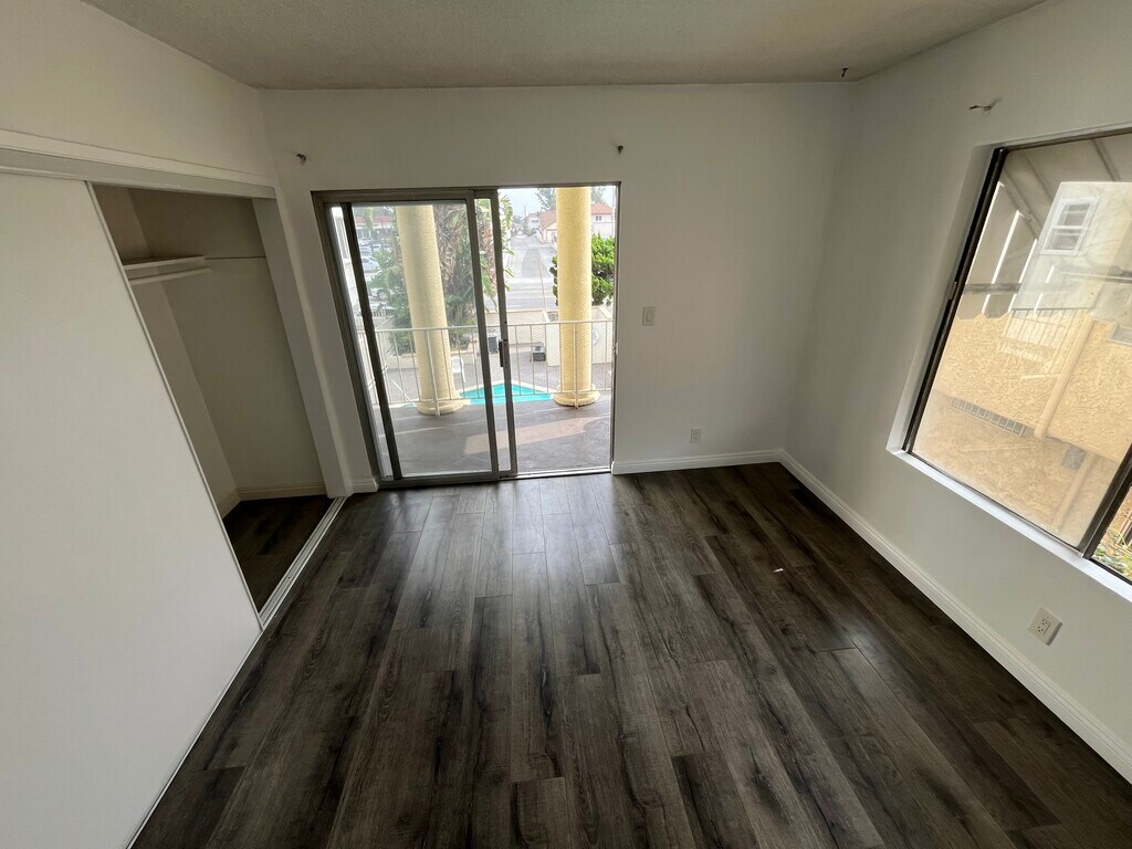 BEST VALUE HANDS DOWN. LARGEST 1 BDRM UNIT and LOW PRICE. COMPARE AND SEE. PLUS, NO PET RENT IF IN BY JAN 2026. Welcome to Atlantic Apartments! A quiet apartment community that offers many amenities and superb location which conveniences to the tenants! A fenced sparkling swimming pool, secured entrance, elevator, covered parking with storage spaces, and a superb location on Atlantic and Valley Blvd. Across the street/walking distance from Starbucks, grocery store, Chase bank, Atlantic Times Square, restaurants, shops and many other amenities you can think of, and yet offers easy access to other parts of Los Angeles via FWY 10 which is several blocks away. Public transportation (bus) is right in front of the apartment! Walk Score is 77! The community is situated on the southwest side of Atlantic Blvd and Valley Blvd intersection and minutes away from FWY 10, Atlantic Times Square, and other national and local retailers along Valley Blvd. Atlantic Time Square is the focal point of the city and offers an array of restaurants, retail stores, as well as AMC theatre and 24 Hour Fitness. This location offers unparalleled convenience to tenants with its abundant access to public transportation and quick access to downtown Los Angeles via FWY 10. The unit (#19) is a large (±800SF); 1bed+1bath on the 2nd floor overlooks pool and offers a bright and excellent layout has been tastefully updated with laminate/hardwood flooring in the living room and bedroom, tiled flooring in the dining room, kitchen and bathroom. It offers private balcony with views of pool and city. The kitchen is clean with white cabinets and white countertops (refrigerator is included). There is a community swimming pool in the front; building has an elevator. Parking is provided by covered garage parking. The unit comes with 1 covered parking complete with storage cabinets; additional parking is available with extra rent ($90/month). Laundry is provided via shared laundry room. Tenant pays for electricity and Cable/Wifi. Owner pays for water and trash. Pet deposit waived if you can provide proof the pet was acquired from a rescue. Credit score of 650 or higher preferred with work history. Showing by appointment only!