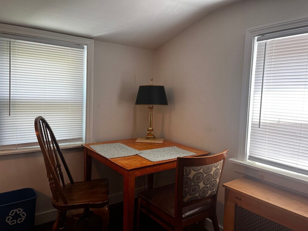 Residential Bedford location and within walking distance to library & shops, Whole Foods & Marshall’s, exercise facilities, CVS, Starbucks, restaurants & the MBTA BUS into Alewife Station @ the end of Rte. 2 in Cambridge. This 2nd floor spacious & sparkling, comfortable apartment overlooks a lovely green lawn from your deck. Off street parking & newly renovated DOVE GRAY cabinetry in the granite kitchen & bath complete with upscale 3 rack stainless GAS stove, s/s refrigerator & granite counters. A bonus with both your exclusive washer & dryer. Additional eaves space for your desk & a sitting area… overlooking a small deck & side yard. The GAS heat & electric utilities are not included. The 6’ mirror bedroom closet is huge with built-ins for shoes & sweaters., etc,. and offers additional -large storage space in this charming SW bungalow style home in the heart of Bedford. Air conditioners for summer are included & it is currently fully furnished., The apartments becomes available January 1st and won’t last long… The HAFB & VA are nearby, with an easy commute to 128, 95, 93, 2West toward Concord & Worcester & 3N to New Hampshire. Email initial inquiries please, if interested or text One year lease, first, last & HR employment verification letter of reference. No pets & prefer no smoking. Thank you.