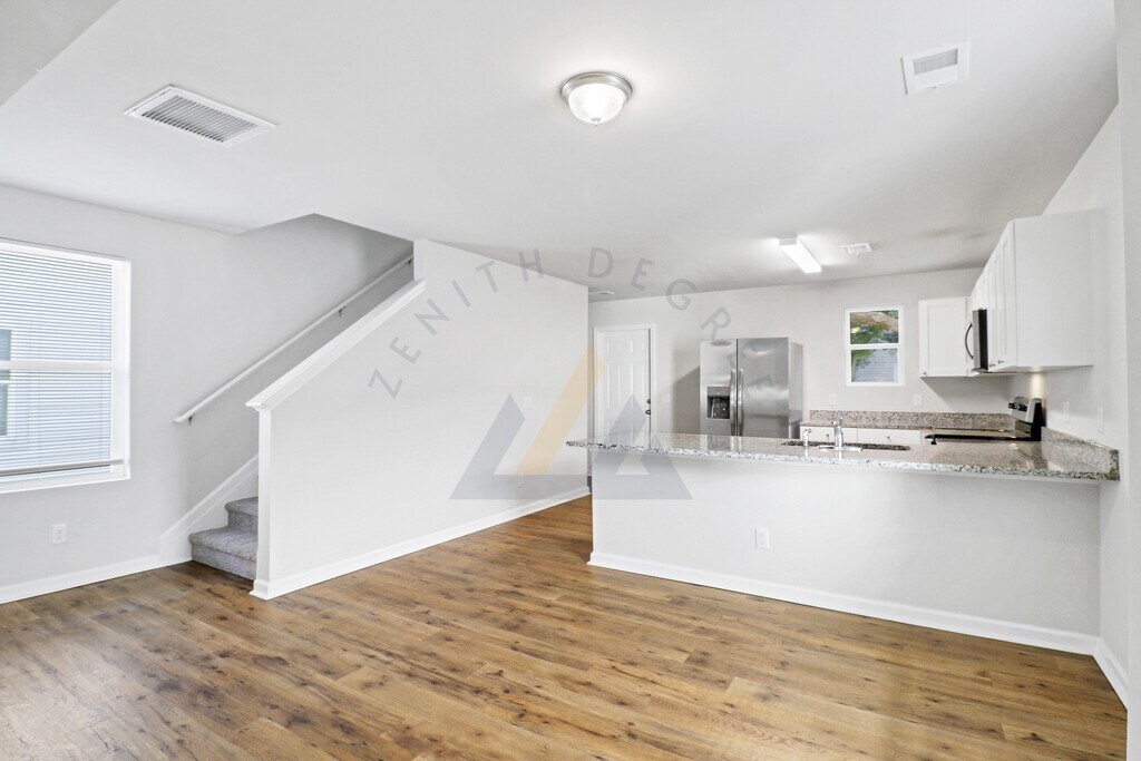 This bright, modern Charleston style home offers everything today’s renter is looking for. Upon entering the main level, you are welcomed by a clean, open concept layout that flows seamlessly from the living room to the dining area and into the kitchen. The kitchen features granite countertops, updated white cabinetry, and stainless steel appliances, creating a space that feels both sleek and functional. Just off the kitchen, the private elevated deck with a view of the fenced backyard, offering a quiet and comfortable outdoor retreat. Upstairs, newly cleaned carpeting on the stairs and hallway leads to two generously sized guest bedrooms with ample closet space, as well as a full guest bathroom. The primary suite features its own private en suite bathroom. Palmetto Breeze is ideally located on Lady’s Island, just minutes from Downtown Beaufort, Port Royal, grocery stores, restaurants, shopping, and Beaches.