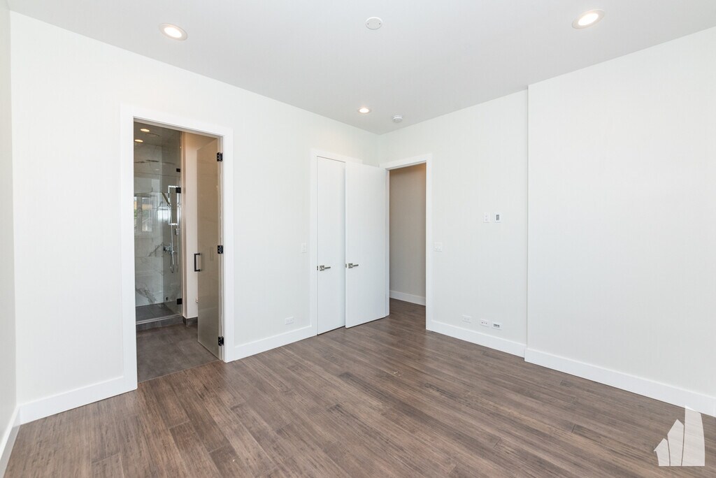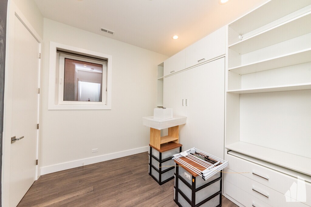 Gorgeous 3 bed 2 bath apartment in a luxury boutique building. High ceilings & flooded with natural light, open floor plan with top of the line kitchen featuring Thermador appliances, quartz countertops, backsplash & custom LED accent lighting. Large primary suite with a walk-in closet and spa like bathroom featuring heated floors and a steam shower. The second bedroom has a high-end custom built-in Murphy bed, perfect as a guest bedroom. The unit features hardwood floor throughout, central air/heata, in-unit laundry, high-end blinds & smart keyless locks. Private balcony off the living room as well as shared back porch. Additional storage in the basement. 1 covered outdoor parking spot included. Dogs friendly. Close to 90/94, blue line CTA, and several new parks. Very walkable location! Can walk to restaurants, bars, coffee, shopping in about 5 minutes. Easy commute to Downtown.