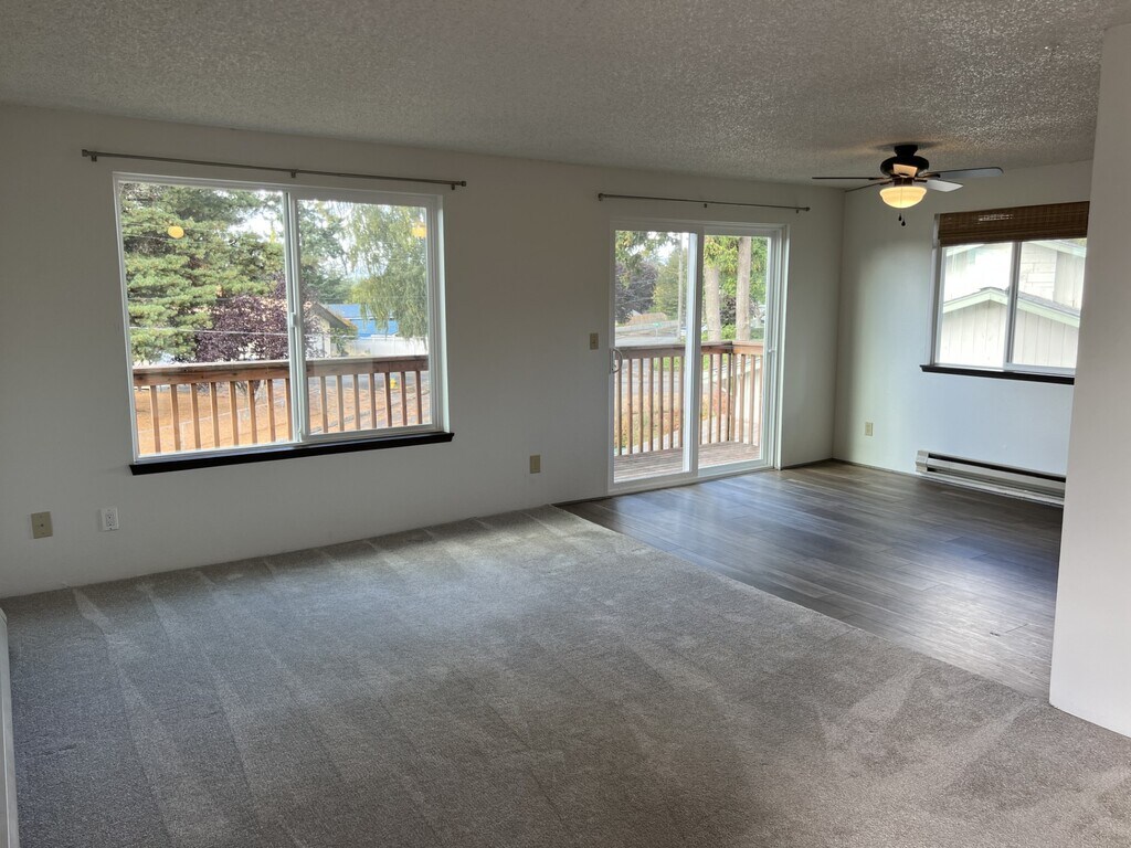 Spacious 2-Bedroom Upper Duplex in Central Location This bright and updated 2 bed, 1 bath upper unit offers 930 sq. ft. of comfortable living space. Features include newer windows, LVP flooring and carpet, paint, and an updated bath, plus a deck off the slider with a lovely view. Enjoy plenty of yard space, one covered parking spot with additional off-street parking, a storage unit, and free shared laundry with just one other unit. Conveniently located in a quiet residential neighborhood close to shopping, transit, and amenities.