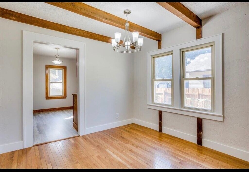 Quiet and tucked away recently renovated 2 bedroom 2 bathroom house with a detached garage and fenced in back yard. Beautiful overhead beams accent the formal living and dining room. A kitchen with cabinets galore! A flex space used previously as a master bedroom can also be used as a secondary living room with an attached day room. New utilities; includes a washer and dryer in the basement. Plenty of space for storage. Centrally located in downtown Wichita near Kellogg and I-135. Over 1200sq ft not including the detached garage! Garage can easily fit one car and any storage needed. Lofted garage as well for extra storage space.