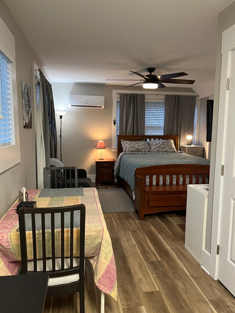 This a furnished above the garage studio apartment that includes utilities. It is meant for 1 person only and includes off street parking for 1 car.