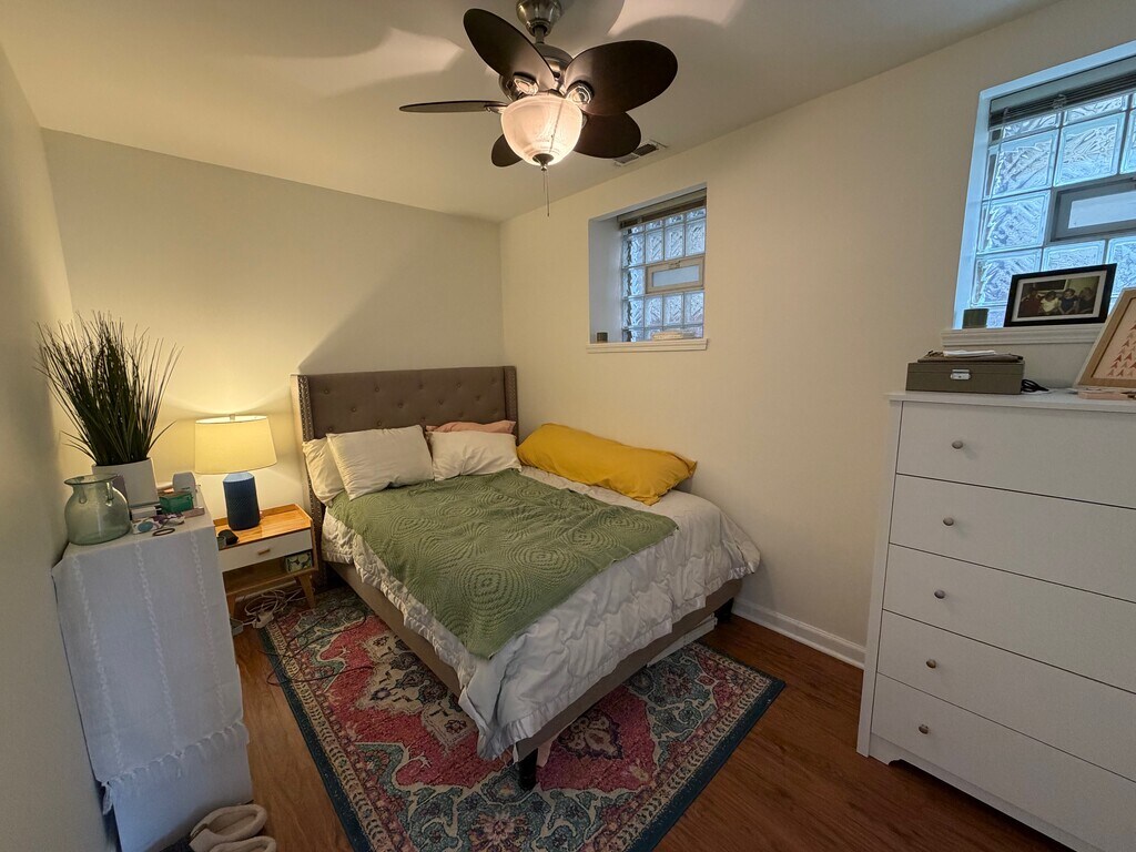 Fully updated, spacious 1 bedroom/1 bath home with large den and ample closet space with central heat/air. The den is a perfect size for an office. It features new higher end appliances. Free washer/dryer is included in the back utility room which is shared with one other unit with 1 person. Bike storage can also be used in this space. This is a south facing, ground floor unit that receives substantial sunlight in the living room/den with over 8" ceilings. Approximately 750sq ft home. Great hosting space in the common backyard. The home is available 5/1. $400 non-refundable move in fee and need 700+ credit score and monthly gross income of 3 times rent.