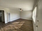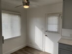 This recently updated 2-bedroom, 1-bathroom home offers a comfortable and well-maintained living space with thoughtful improvements and practical amenities. The interior has been freshly painted and features durable vinyl flooring in the main living areas, with carpeted bedrooms that provide warmth and comfort. The functional layout creates a natural flow between the living room and kitchen, making the space feel open and inviting. The kitchen has been upgraded with quartzite countertops, a single basin sink, and stainless steel appliances, offering a clean, refreshed look. Adjacent to the kitchen is a dining area that can also serve as a cozy breakfast nook—ideal for casual meals, morning coffee, or a small workspace. Both bedrooms are well-sized and include ceiling fans for added comfort. A wall heater provides efficient warmth during cooler months. For added convenience, a washer and dryer are included in the unit. Outside, the property offers a driveway that accommodates two vehicles in tandem, along with a private outdoor storage shed for additional storage needs. Landscaping service is included, helping ensure the exterior remains well maintained throughout the year. This move-in ready home combines fresh updates with practical features, creating a welcoming and functional place to call home. Available now.