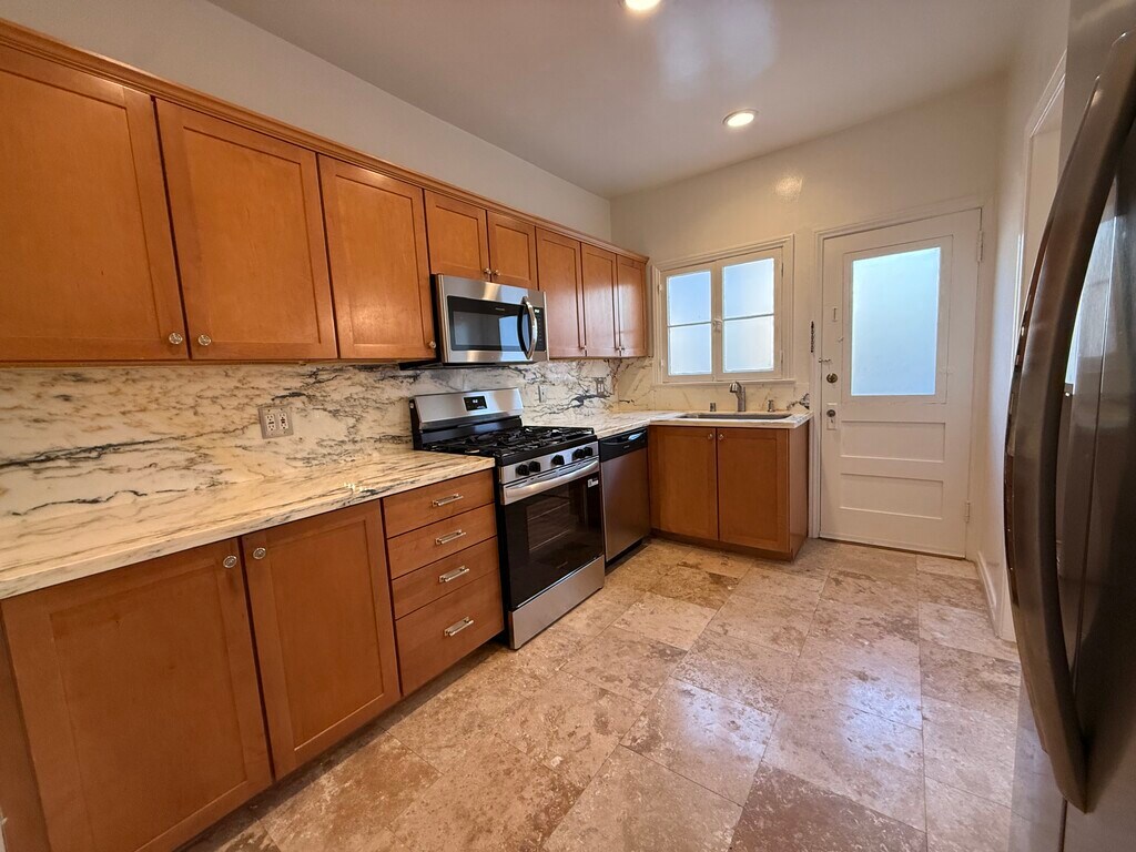 Beautifully Updated 1920’s Gated Spanish Fourplex - Upper OWNER’S UNIT Just renovated, one of the nicest classic Spanish colonial buildings in the Pico/Robertson neighborhood. Located just 2 blocks south of Beverly Hills, this property is centrally located - convenient for commutes throughout the city. It also offers shops and restaurants within walking distance. The property is gated with intercom entry. Spanish garden courtyard with fountain. The backyard has a shared terra cotta furnished patio with a gas barbecue. This building has been completely updated, embracing the classic Spanish charm of the original architecture while providing the amenities necessary for comfortable living – including features like central AC, in-unit laundry, garage parking for one car, and gated entry. See below for a list of apartment features. 2BR/1BA Upper Apartment $3,500/month Bedrooms: 2 Bathrooms: 1 full Sq Footage: 1,100 Parking: 1 garage Pet Policy: Sorry, no pets allowed Available: December 1, 2025 (or a few days earlier) RENTAL FEATURES: • Central air & heat w. Nest smart thermostat • Original oak hardwood floors • Large upper unit • Private balcony • Decorative fireplace • High ceilings • Travertine bathroom tile • Formal dining room w/ exposed beam ceiling • Updated kitchen • Stainless steel appliances • Dishwasher • New refrigerator • Travertine floors • New Built-in microwave • New Stove / Oven • Stone countertops • Washer / Dryer in unit COMMUNITY FEATURES • Gated property • Secured intercom entry • Security camera monitored • Garage parking • Shared patio backyard w/ outdoor dining area • Community BBQ • Vintage building • Garden / fountain courtyard • Walk to restaurants & shops • Smoke free building LEASE TERMS 2 year lease Our properties usually rent fast and tenants often stay a long time so please inquire right away or you could miss this opportunity.