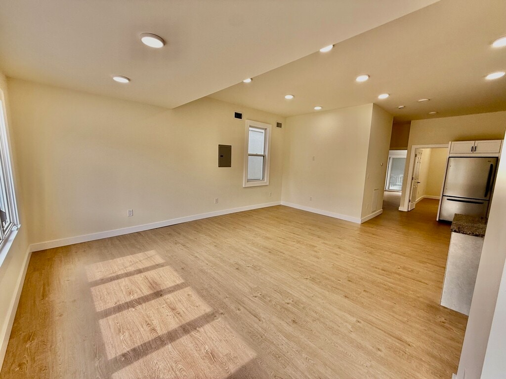 Welcome to this beautifully renovated 2 bedroom house in the heart of Secaucus, offering a modern open floor layout with a spacious living/dining area that flows seamlessly into a stylish kitchen. The kitchen is outfitted with SS appliances including a gas stove, microwave, dishwasher, and refrigerator, along with granite countertops, a tiled backsplash, and a convenient side island for casual dining. Freshly painted and updated with recessed lighting, new floors, and a brand-new bathroom featuring a stall shower, the home feels bright and contemporary. A private laundry room with washer, dryer, and sink adds everyday convenience, while a designated storage area in the basement provides extra space. Enjoy the outdoors from your own private deck, perfect for relaxing or entertaining. Small dogs are welcome, making this a pet-friendly home. With its thoughtful updates and ideal location, this residence offers both comfort and style in one. Don't wait! Set up your appointment today!