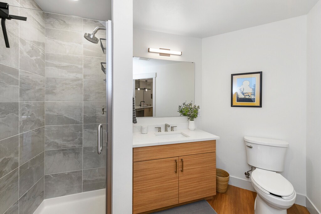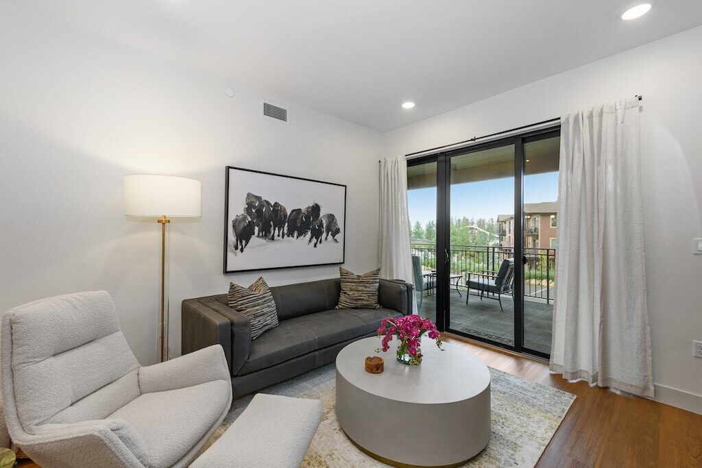 • Upscale modern mountain retreat. • One block off Main Street in Winter Park, CO. • Walking distance to restaurant, bars, and groceries. 2 bedroom Layout: • Bedroom 1: Queen Bed with Full Bathroom • Bedroom 2: Queen Bed with Full Bathroom • Dedicated ski locker • Assigned garage parking space • New construction with high-end furnishing and finishes • Top of the line mattresses • Deck faces park with summer concerts & winter ice skating • Full size washer and dryer inside unit • On site bike storage • Located in new Roam development • Fully stocked kitchen with gas burners • Large Patio with Blackstone Grill • Heated floors in both bathrooms Remote Working Features: • Fiber Optic Internet connection for fast connection • Mud Room with convertible workspace option with door for privacy Additional Features and Location: • Access to mountain biking trails with on-site bike storage • Common area hot tub and fire pit
