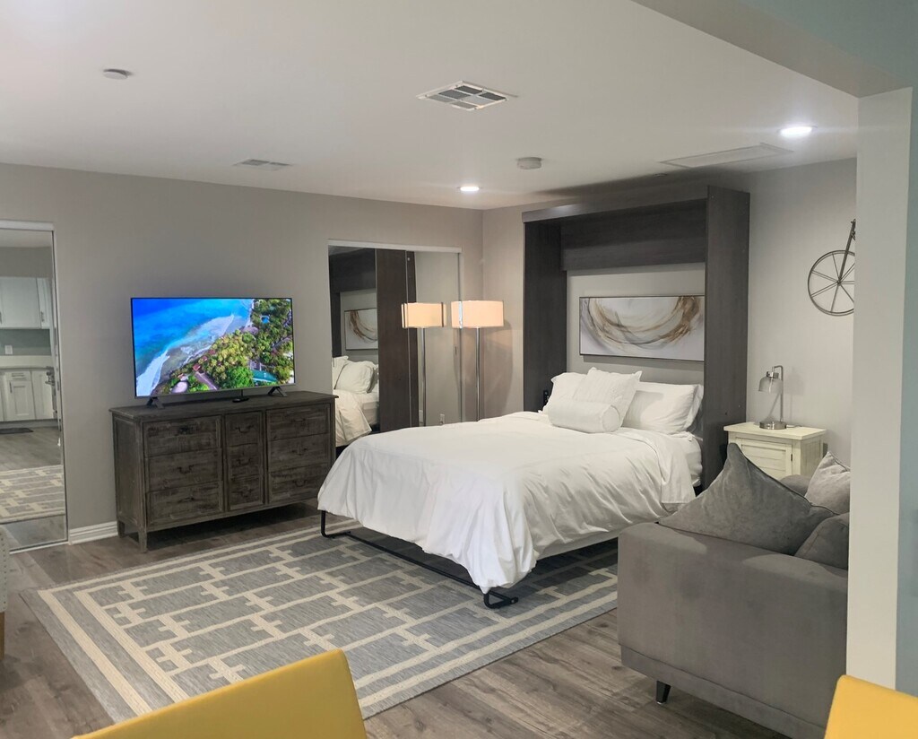 Fully Furnished Studio ADU (550 sq. ft), South of Wilshire Blvd. West of Robertson Blvd., Full bath, Queen-Size Murphy Bed, separate kitchen, large refrigerator and freezer with ice maker, Dual Fuel Stove (Electric Range and Gas Stovetop), toaster, blender, coffee maker, patio, controlled access, very clean, central A/C, large closets, Washer/Dryer, 50" Flat Screen Smart TV, Fast Wi-Fi Internet, ample privacy, yard, bright, quiet family neighborhood, Very Safe Area, Close to Restaurants and Downtown Beverly Hills, secure private driveway parking, Electric gate with Remote. Utilities (Water, Trash, Gas, Electricity, Internet): $200/Mo. Neighborhood overview You will be one block away from an amazing variety of restaurants and boutiques. You are one block from nail salons, hair salons, UPS, a post office, dry cleaners, and a pharmacy. The location is fantastic!