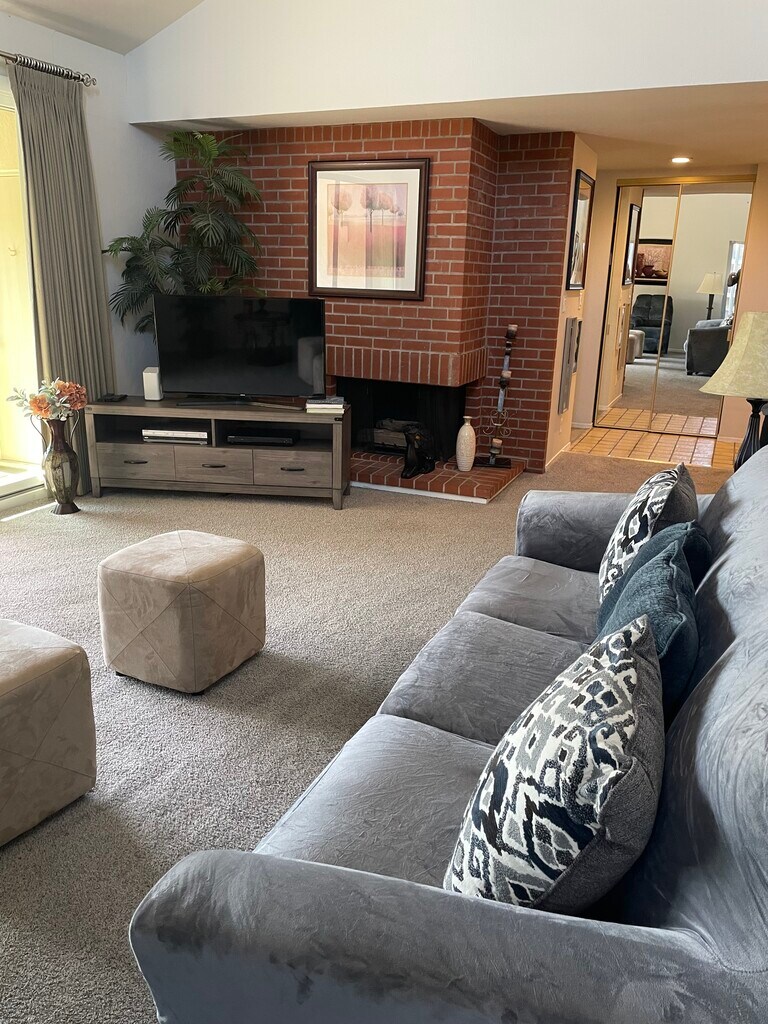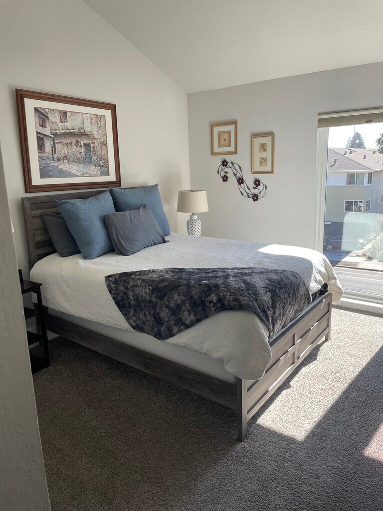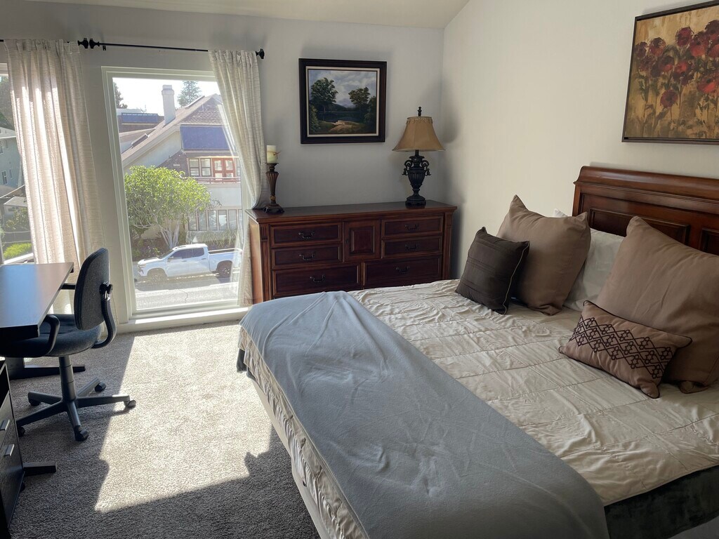 Located two blocks from charming, lively downtown San Carlos and a 5-minute walk to Caltrain, this 1,200-foot top-floor condo in a secure building has two bedrooms, two bathrooms, high ceilings, lots of light and comes fully furnished, including washer/dryer, two televisions and ample storage. The master bedroom has a king-sized bed and includes its own bathroom with a walk-in shower and spacious closets, while the second bedroom has a full-sized bed and is adjacent to the second bathroom, which has a tub and shower. The condo boasts an expansive living room that looks over a balcony and includes a brick fireplace, and there is a separate dining area next to a galley kitchen that includes a dishwasher, microwave, oven and electric stovetop, a full complement of cookware and space for a breakfast nook. Underground parking is provided and there is an elevator from the garage to all levels. Small pets allowed and short-term leases of one month or more. Available for showing now.